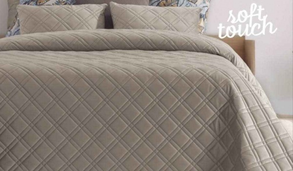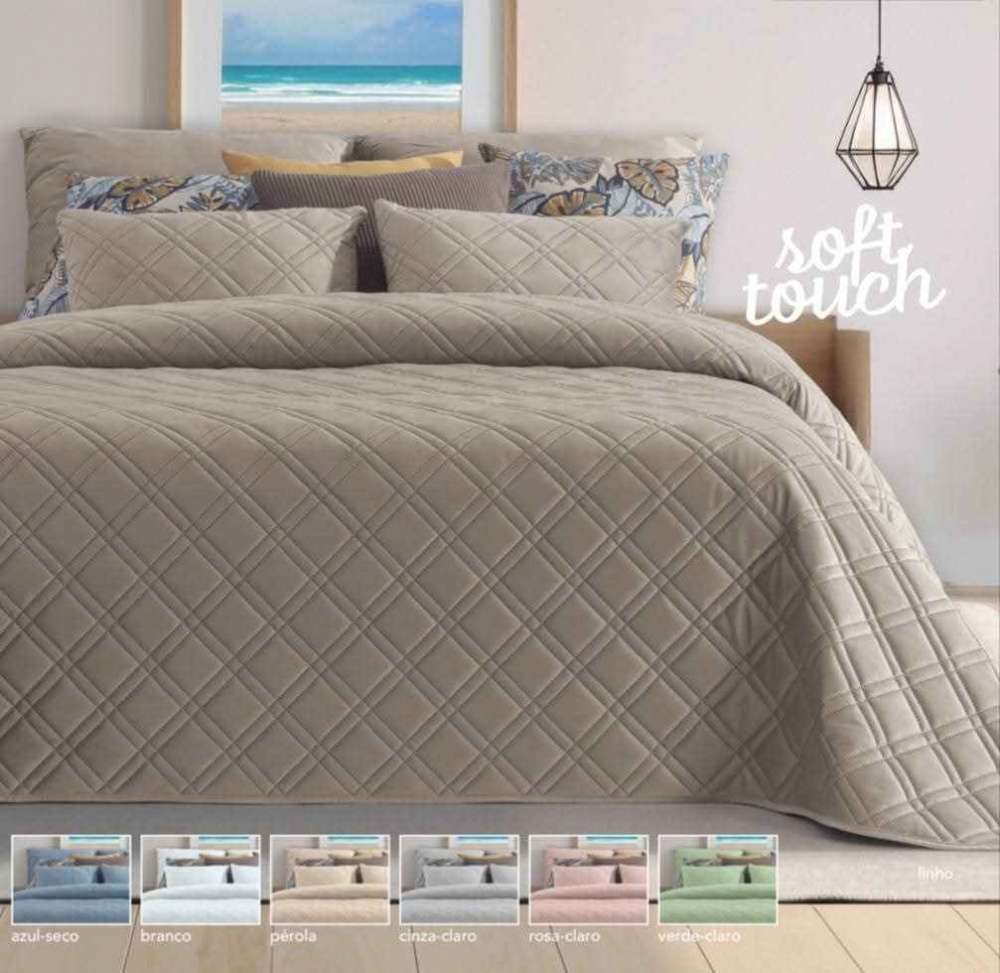 COMPOSIÇÃO E CARACTERÍSTICAS Ref.: Colcha Vânia Linho 1 colcha em veludo muito suave, dupla face 2 almofadas cheias Fabricado em Portugal