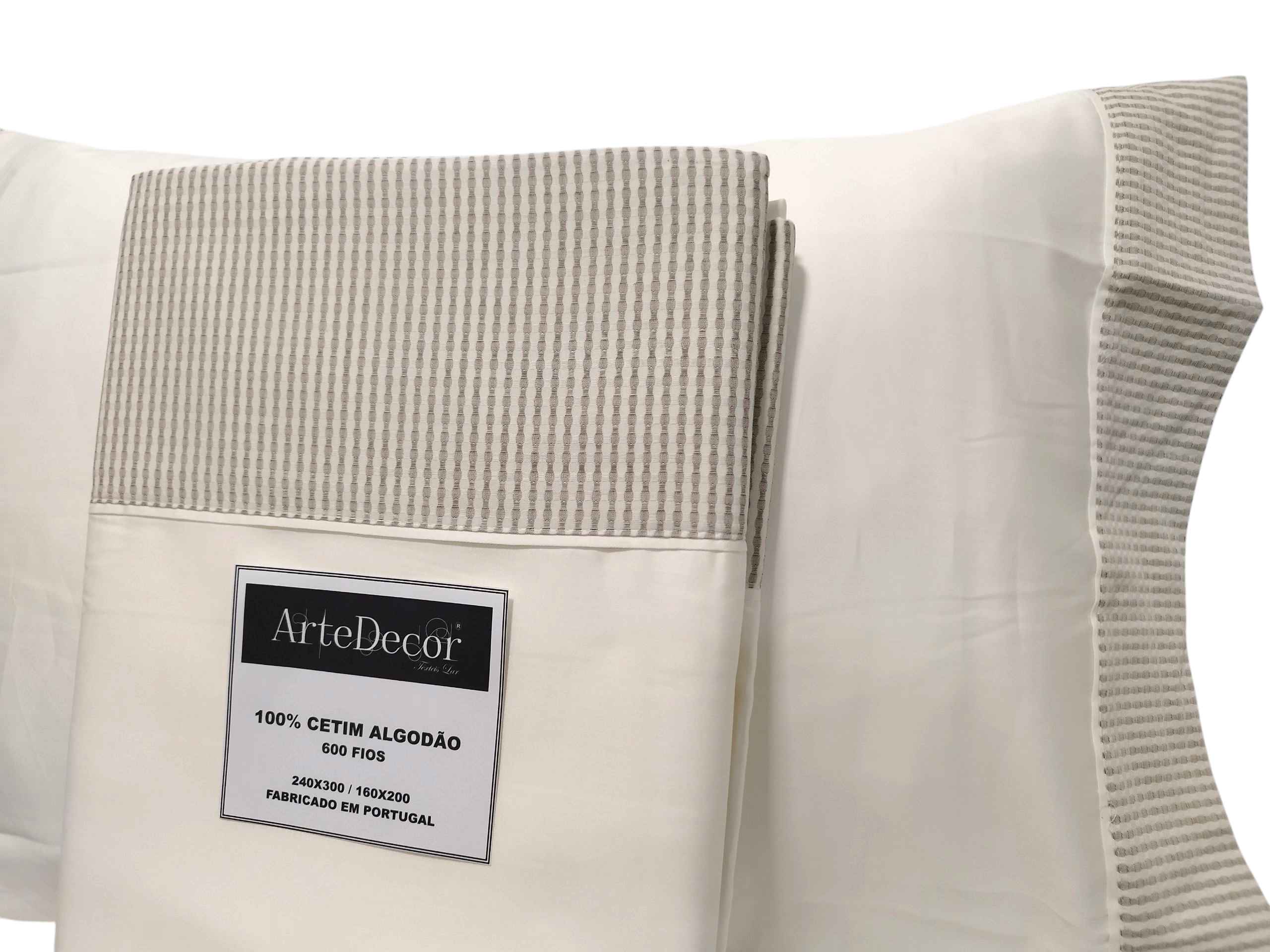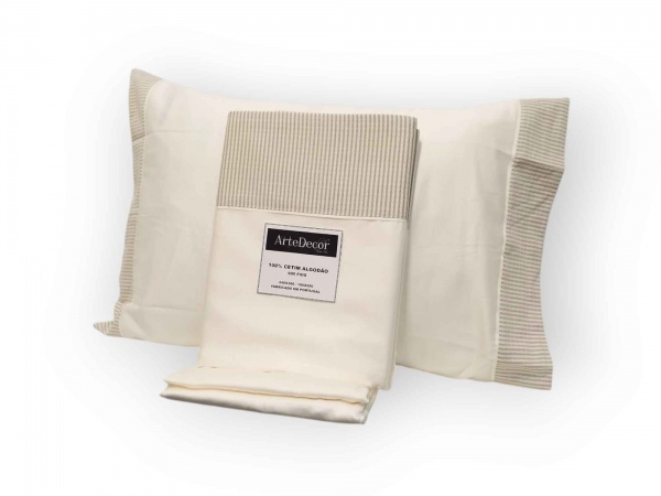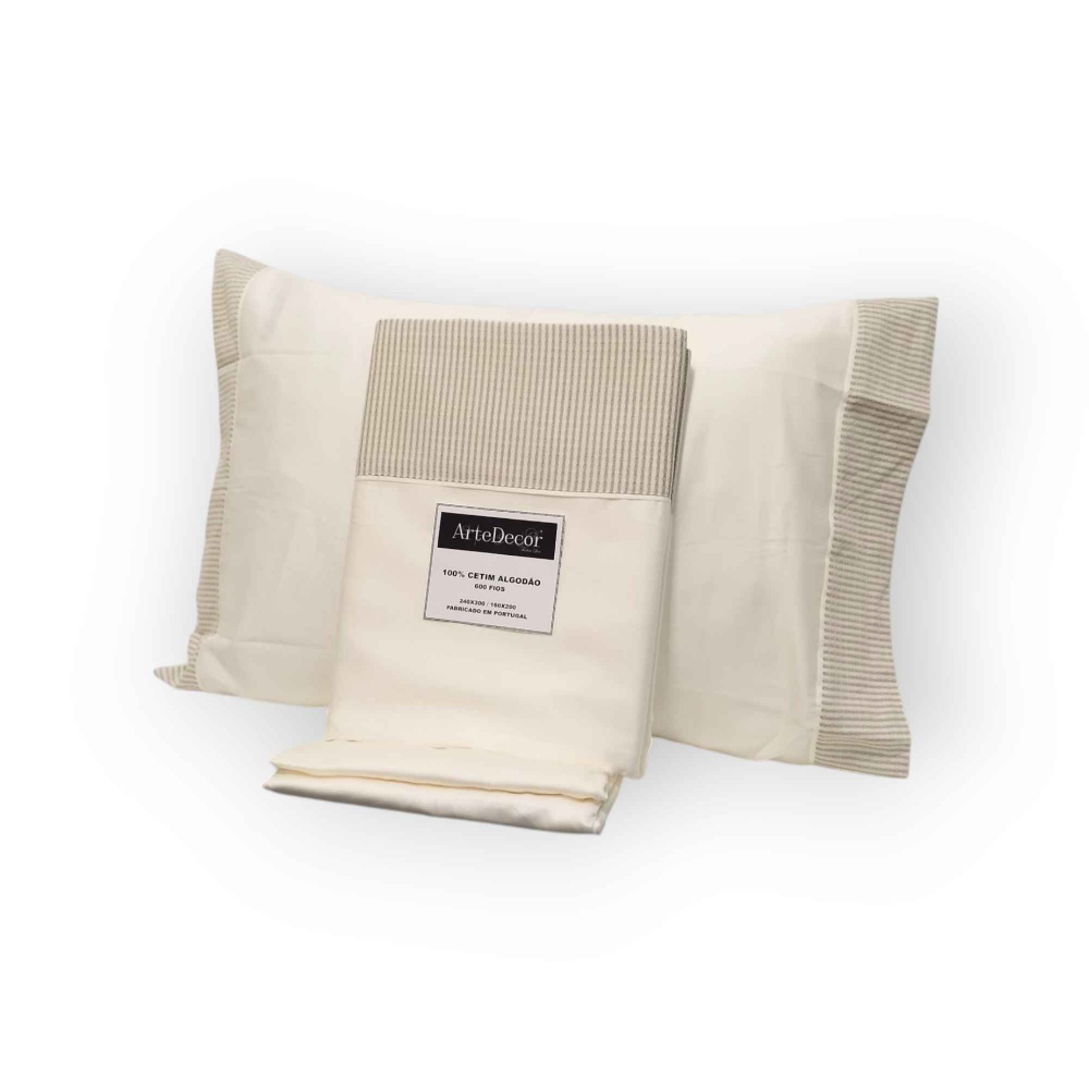 Lençois 100% Algodão Egypcio 600 fios perola riscas