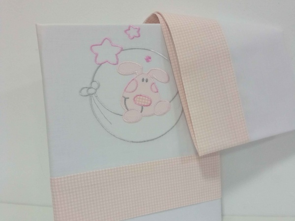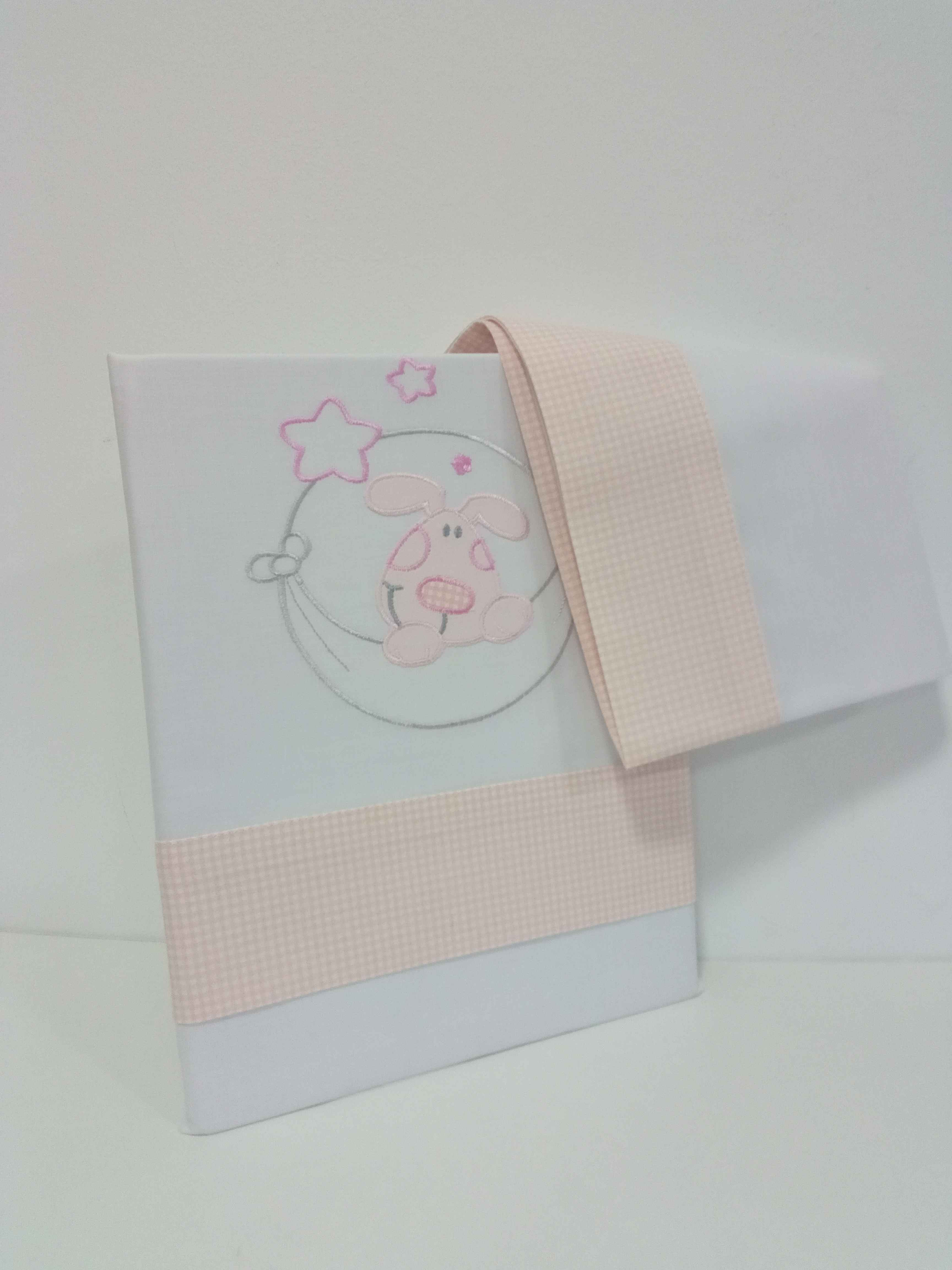 COMPOSIÇÃO E CARACTERÍSTICAS Ref.: BB CÃO ROSA Lençol cima 100x150cm Lençol ajustável 60x120cm Almofada 30x60cm 100% Algodão Fabricado em Portugal