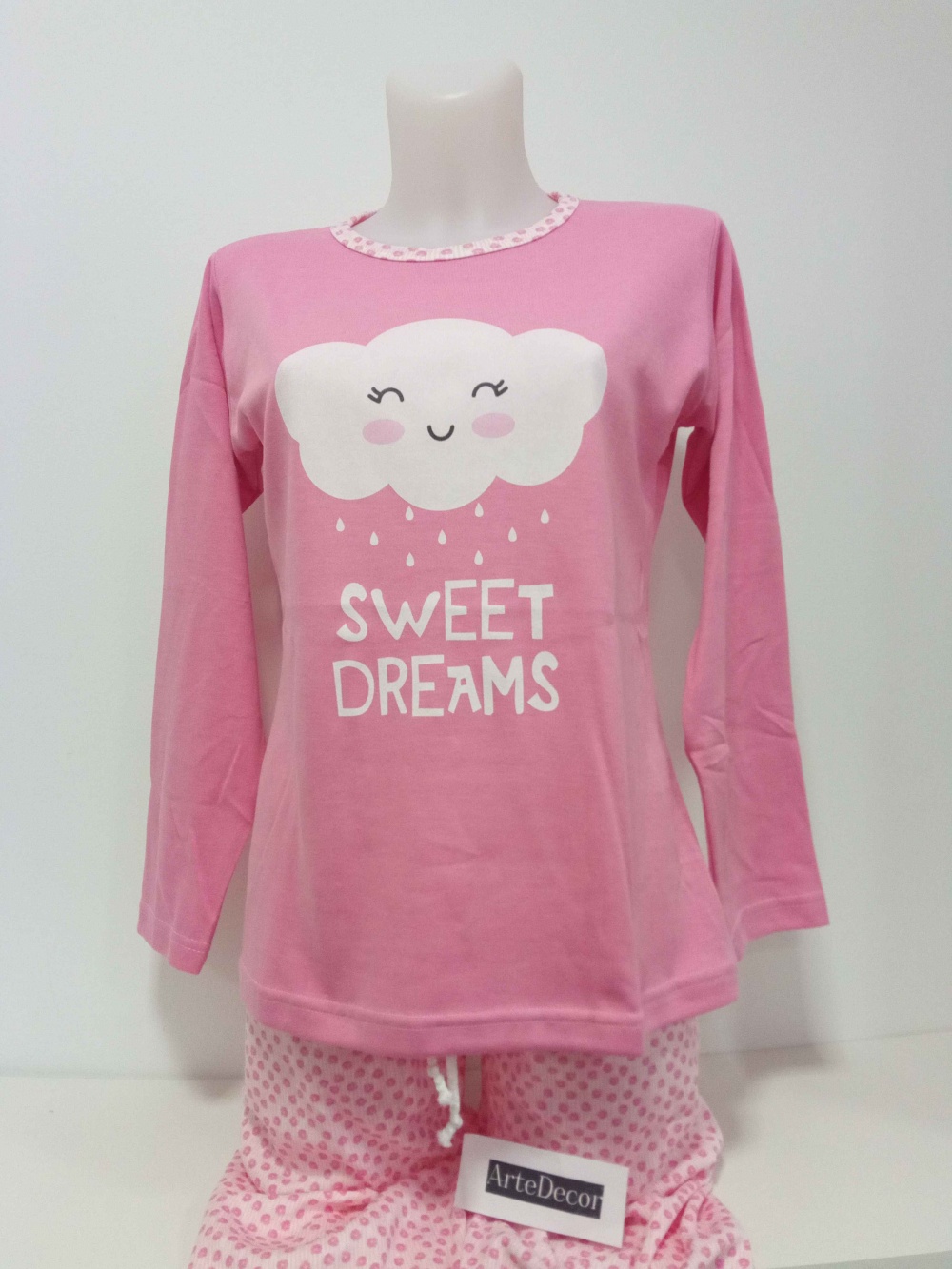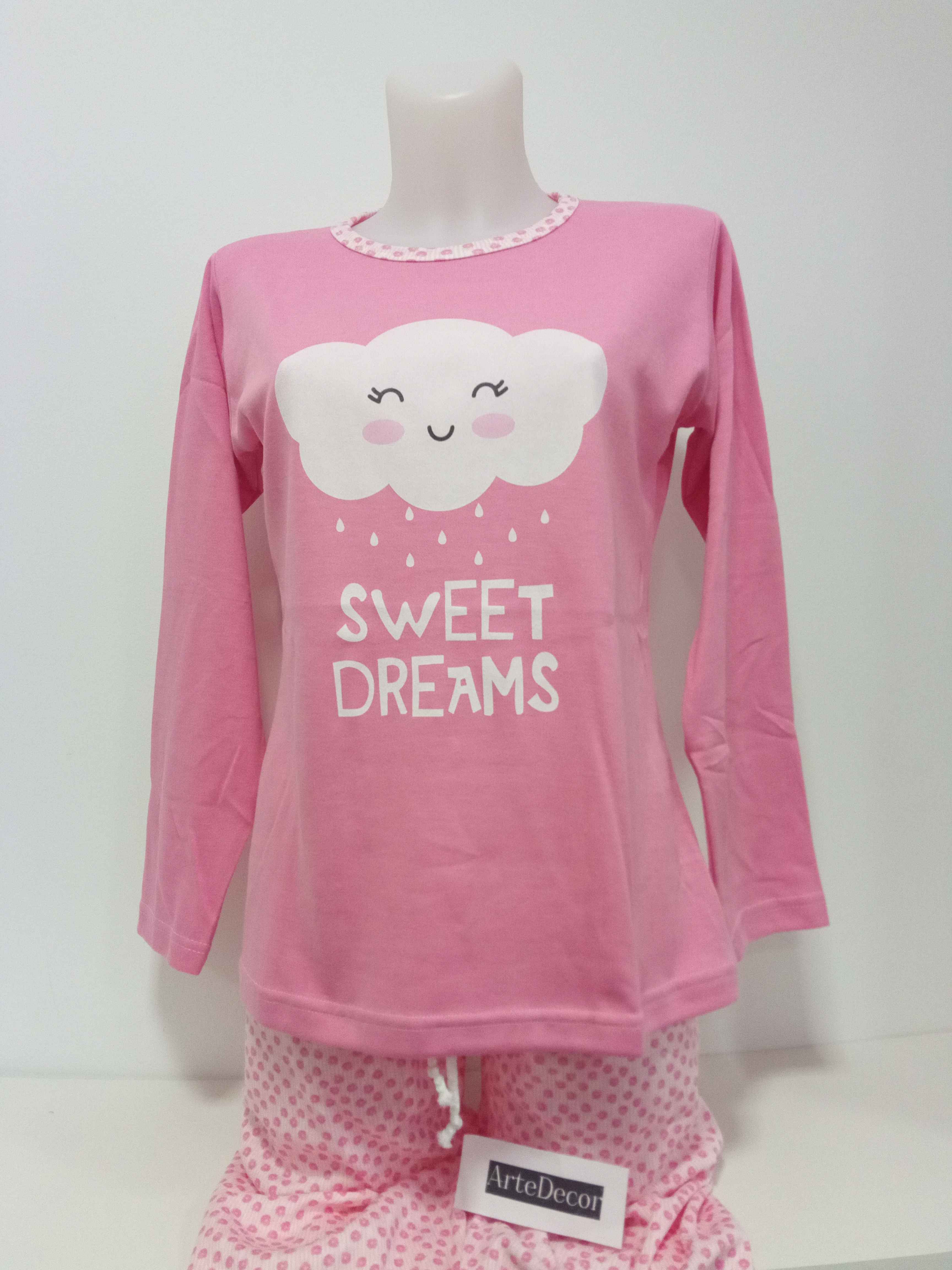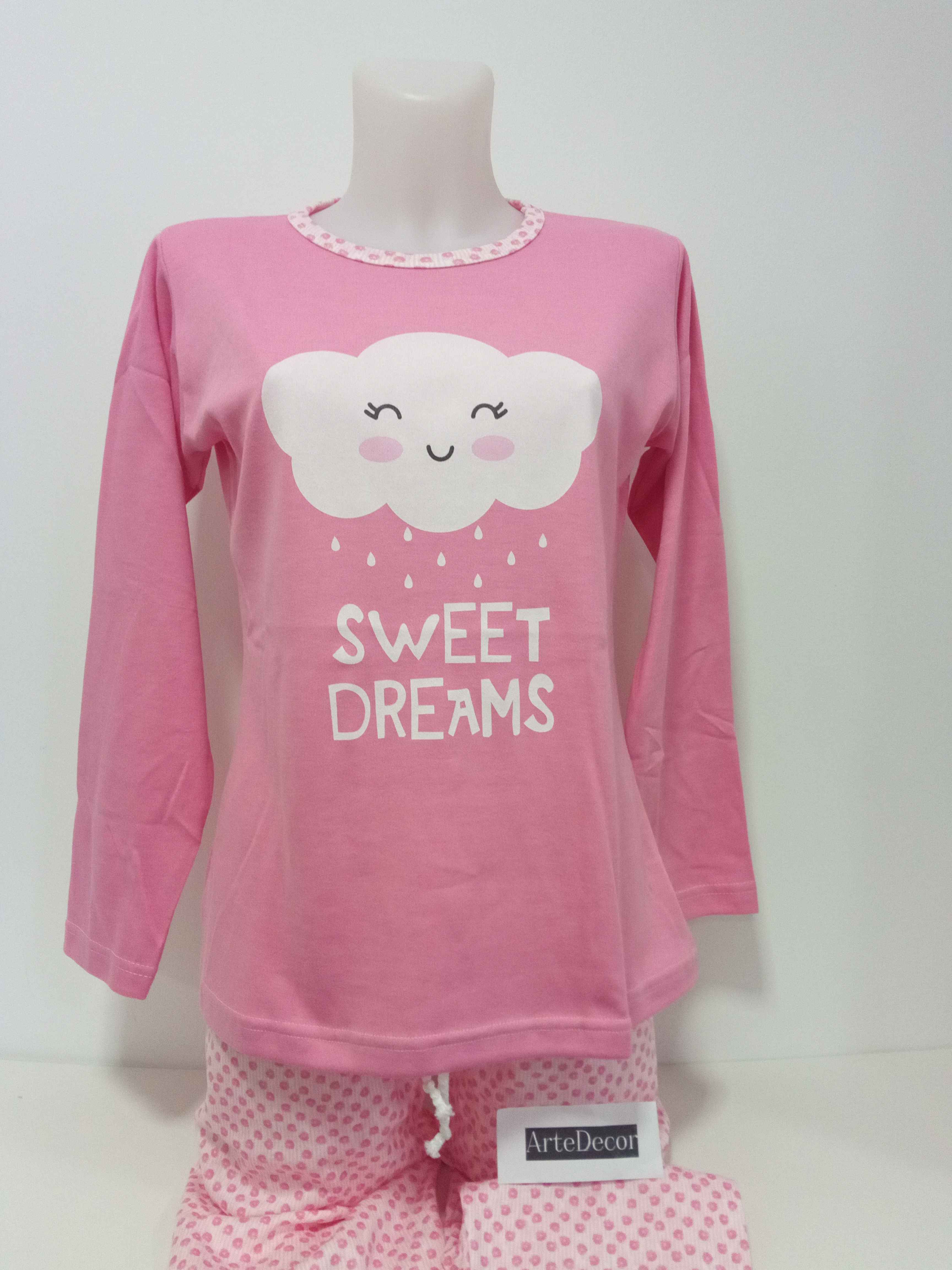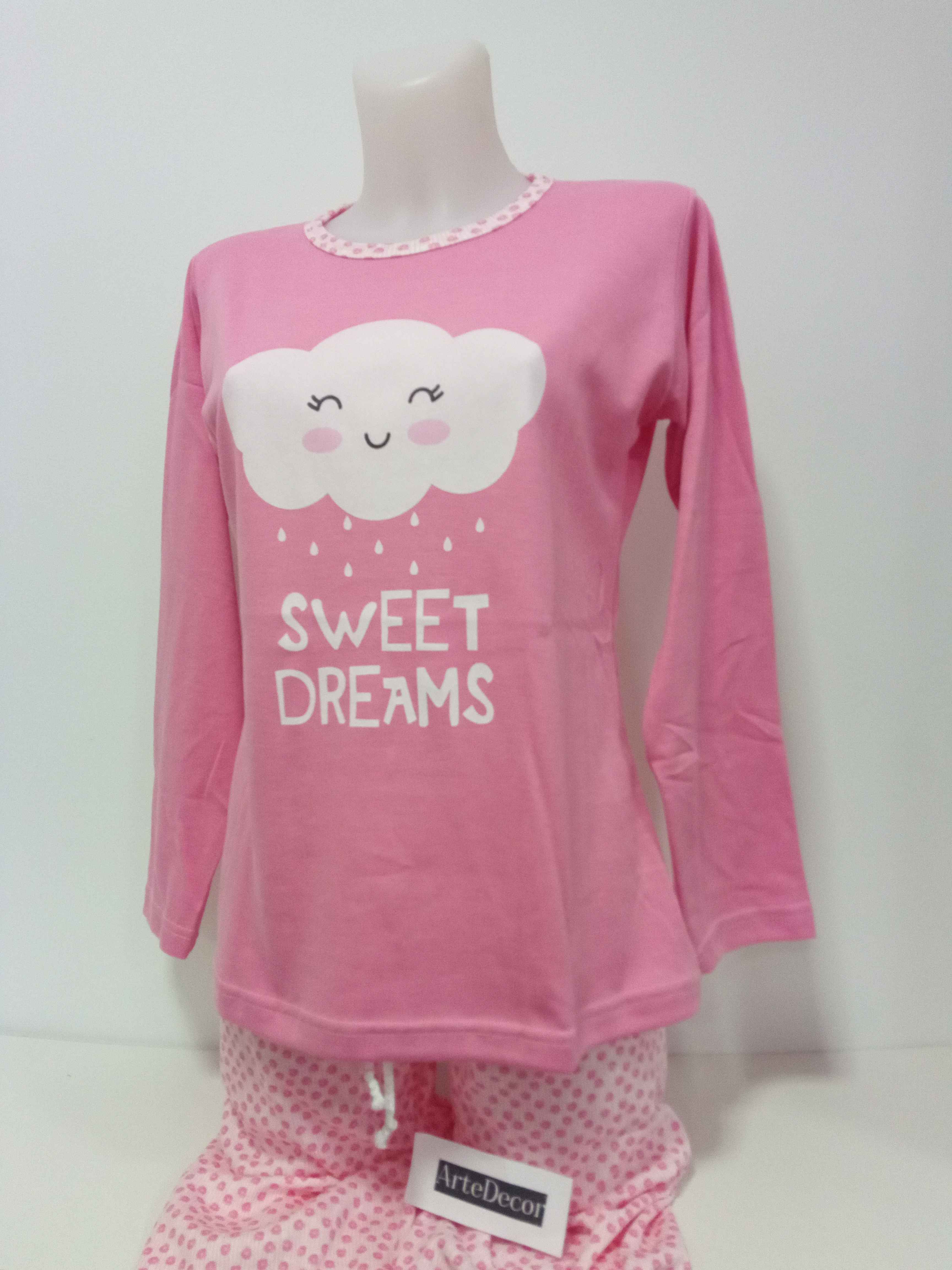 COMPOSIÇÃO E CARACTERÍSTICAS Ref.: Pij nuvem ROSA Pijama de senhora cardado camisola de gola redonda calça com punho 50% Algodão 50% poliéster Fabricado em Portugal