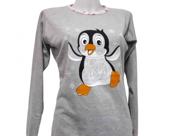 COMPOSIÇÃO E CARACTERÍSTICAS Ref.: Pij cinza pinguim Pijama de criança cardado camisola de gola redonda calça com punho 50% Algodão 50% poliéster Fabricado em Portugal