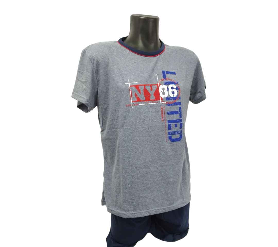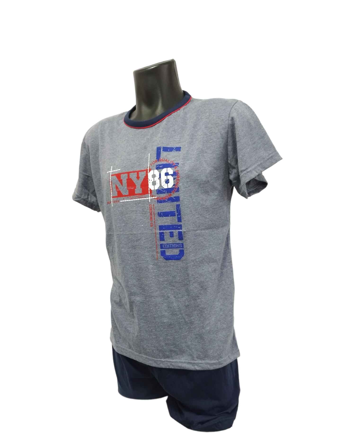 COMPOSIÇÃO E CARACTERÍSTICAS Ref.: Pij Pure H 86 azul Pijama de homem Camisola meia manga Calção liso 50% Algodão 50% Poliéster Fabricado em Portugal