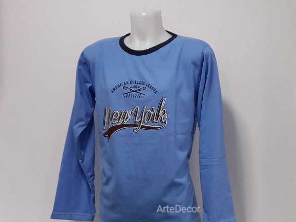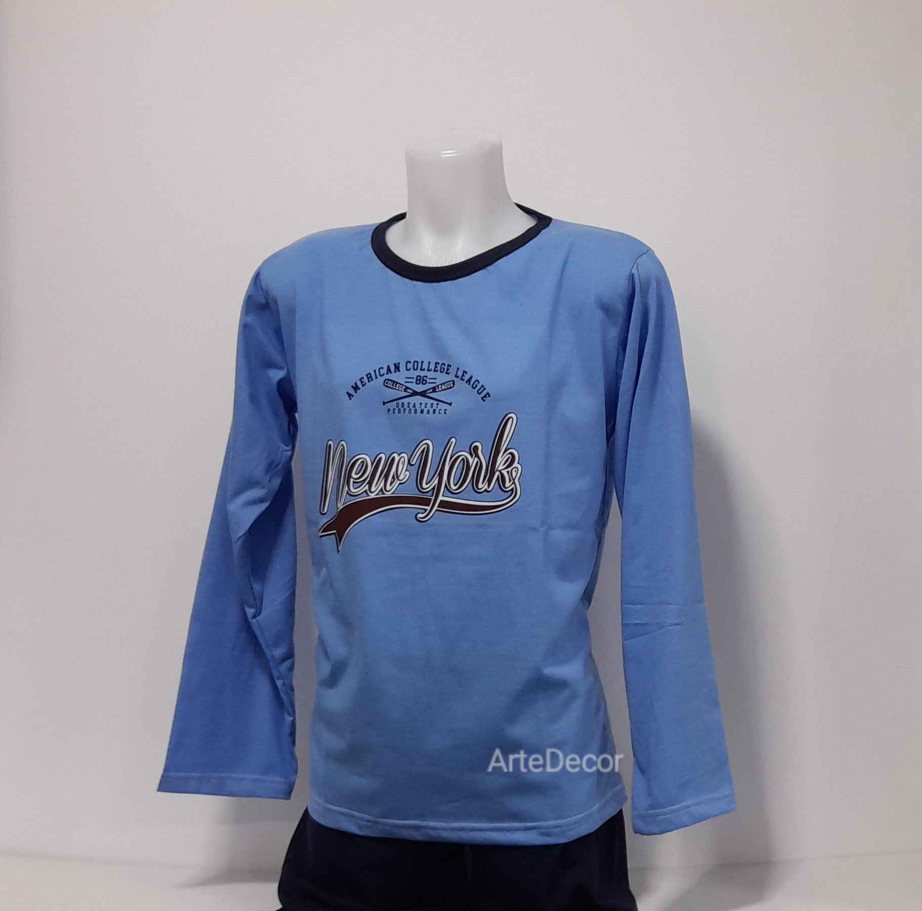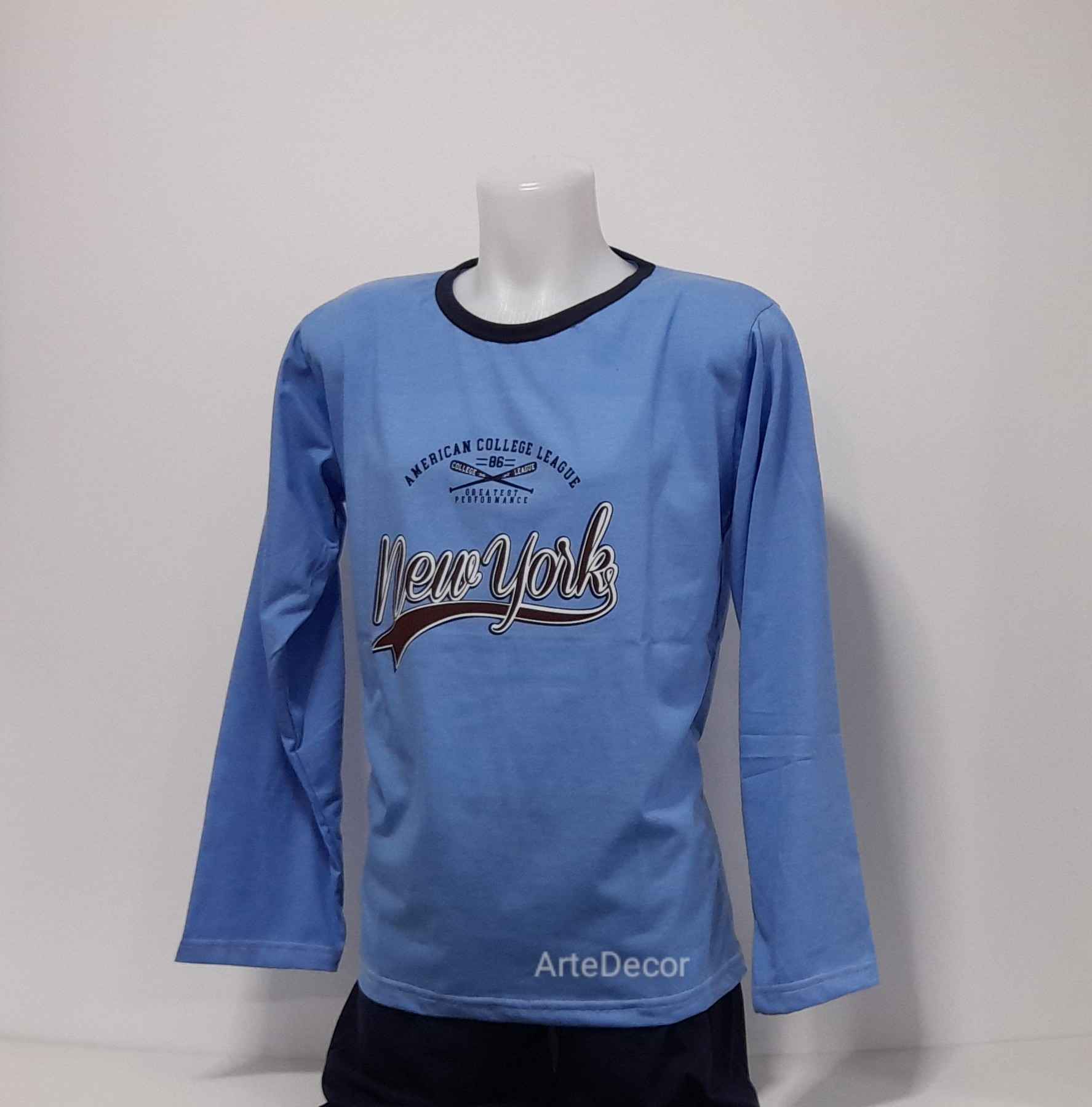 COMPOSIÇÃO E CARACTERÍSTICAS Ref.: PIJ Fino college azul Pijama de homem fino camisola de gola redonda manga comprida calça com punho 50% Algodão 50%poliester Fabricado em Portugal