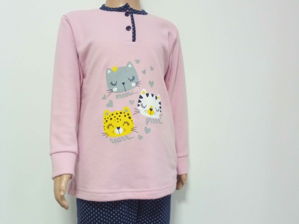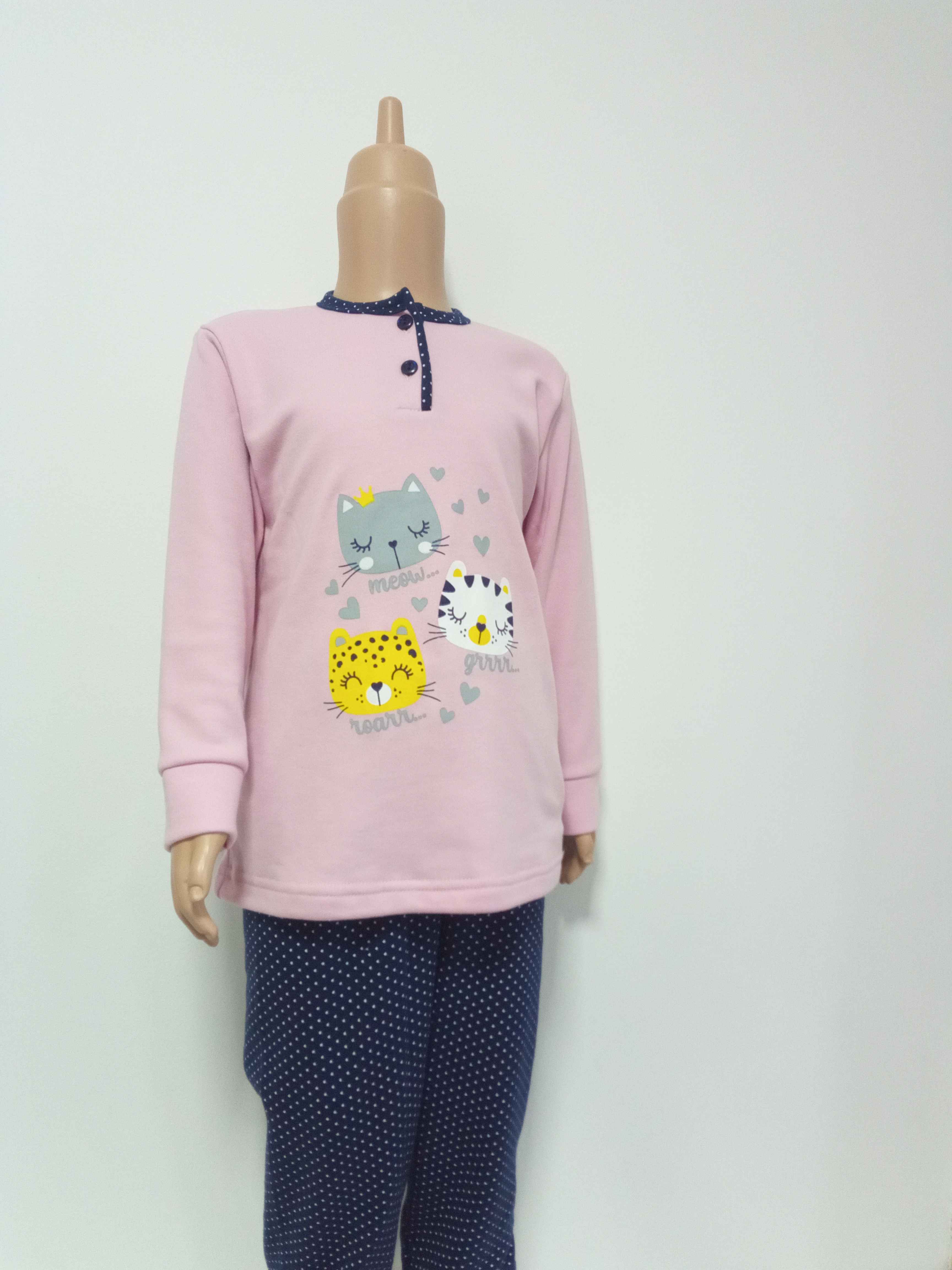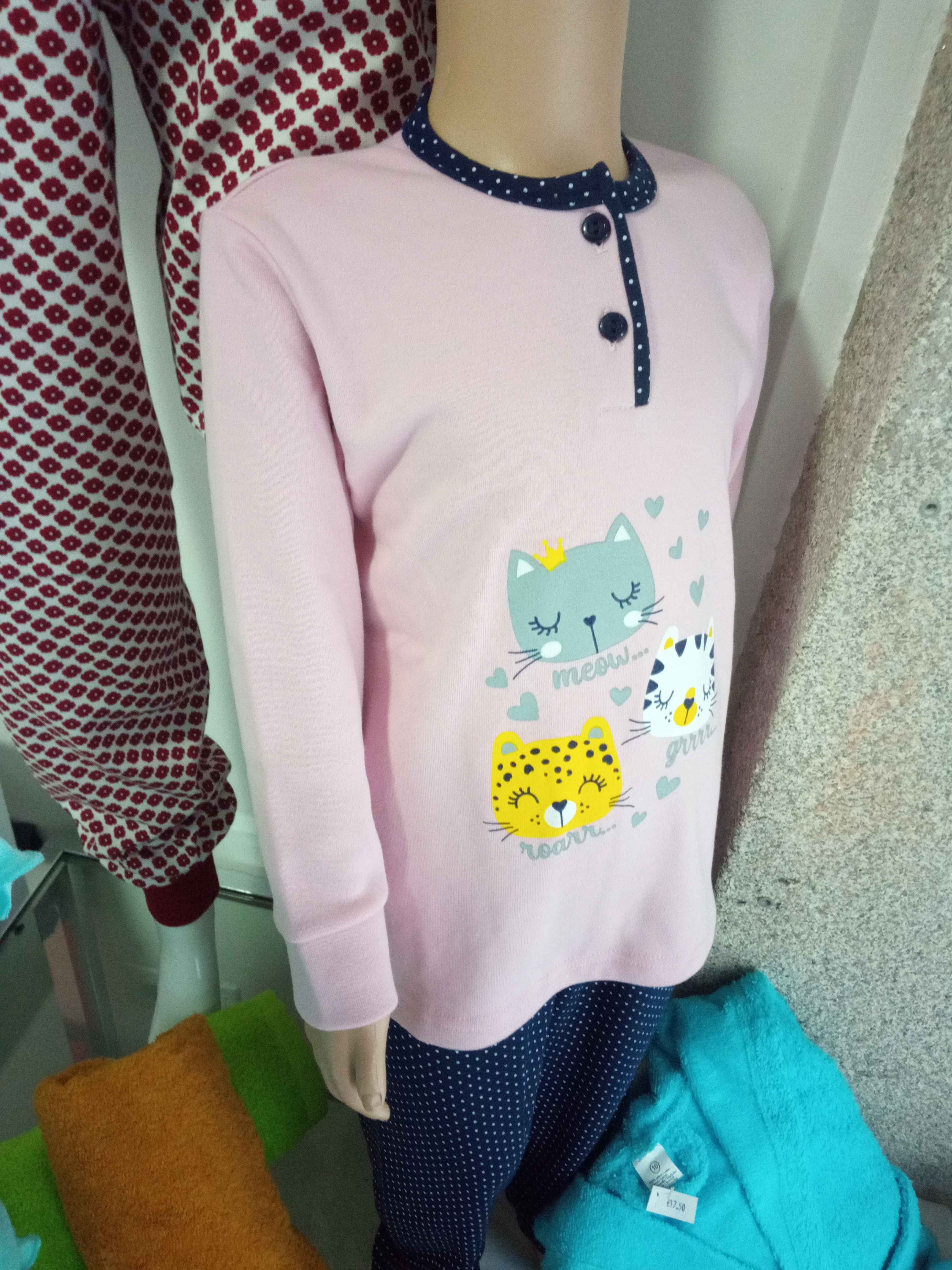 COMPOSIÇÃO E CARACTERÍSTICAS Ref.: Pij 84 menina Pijama de menina cardado Manga comprida Calça estampada com punho Fabricado em Portugal O tamanho veste mesmo para a idade
