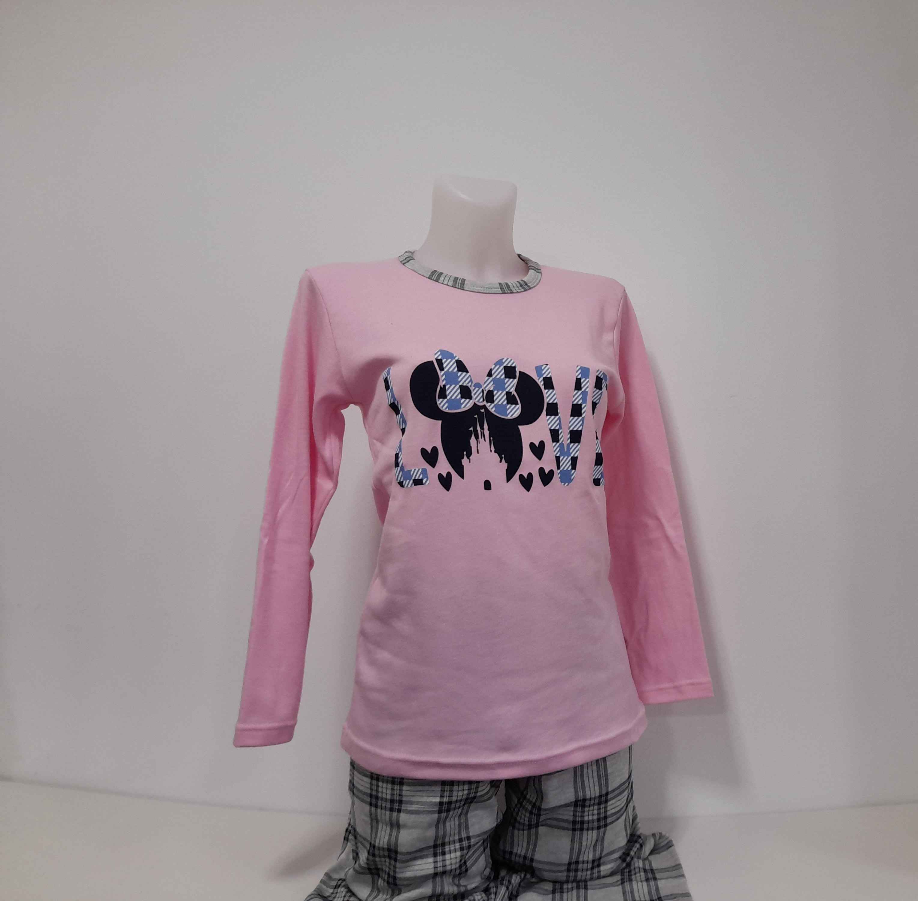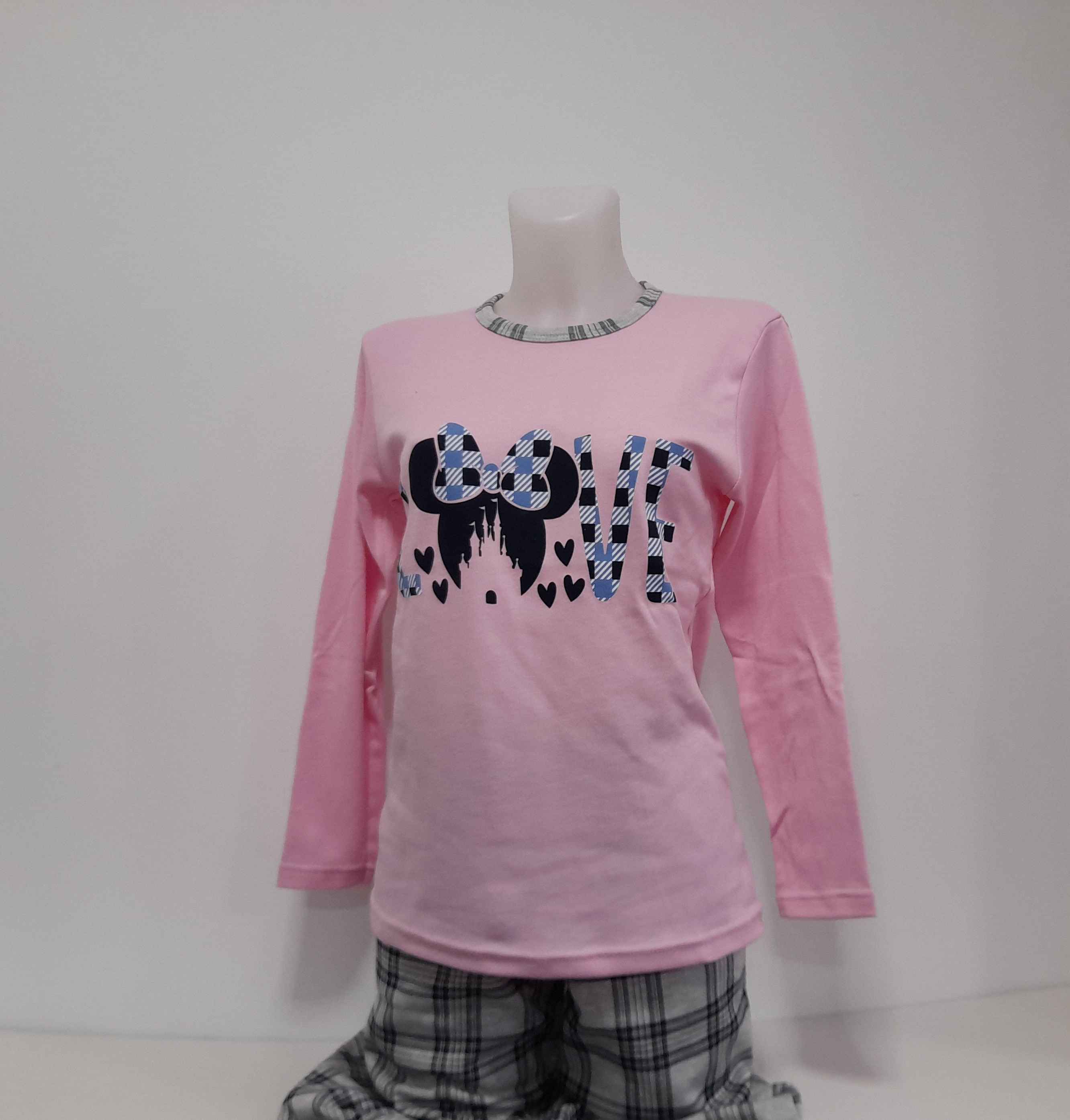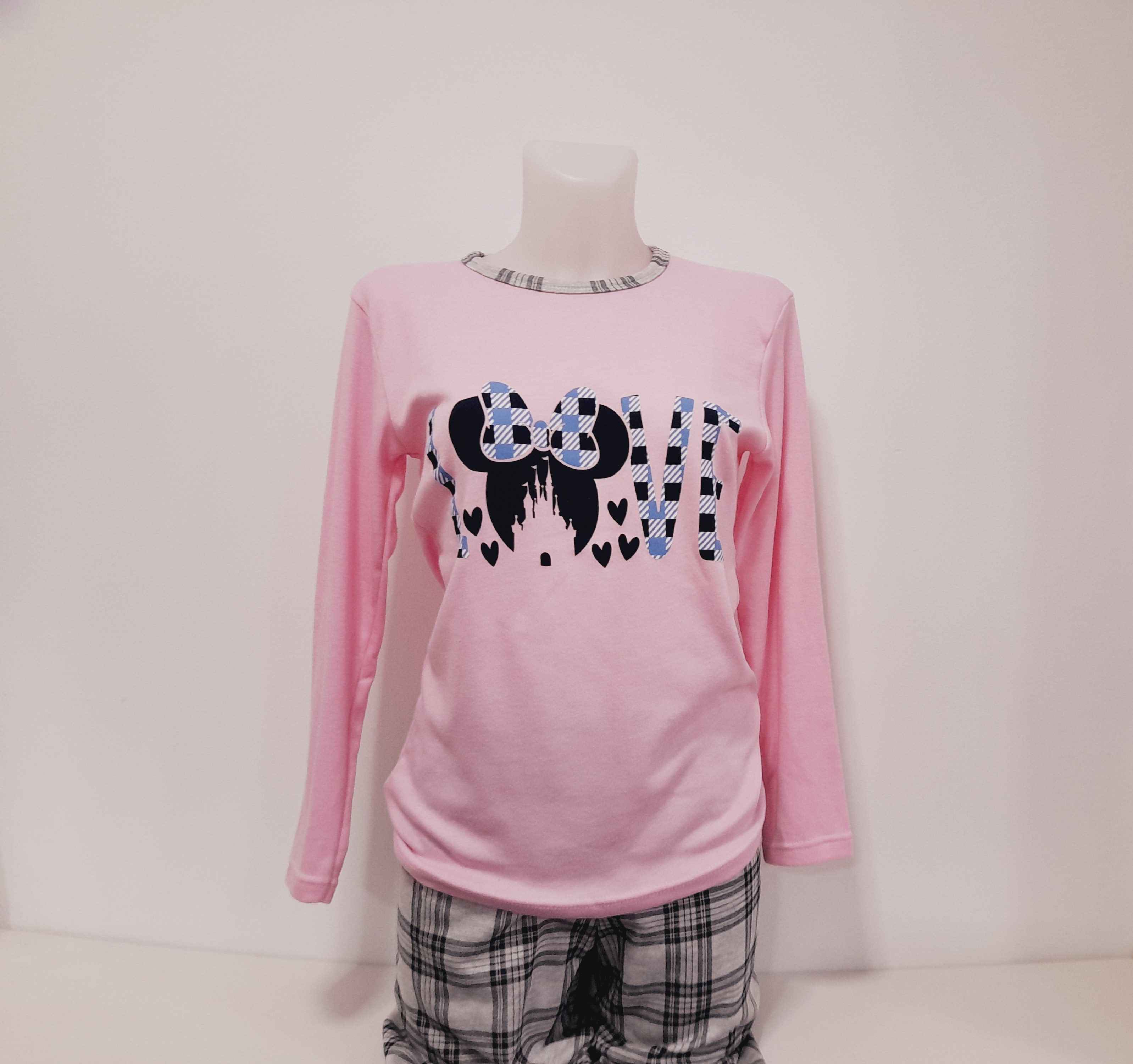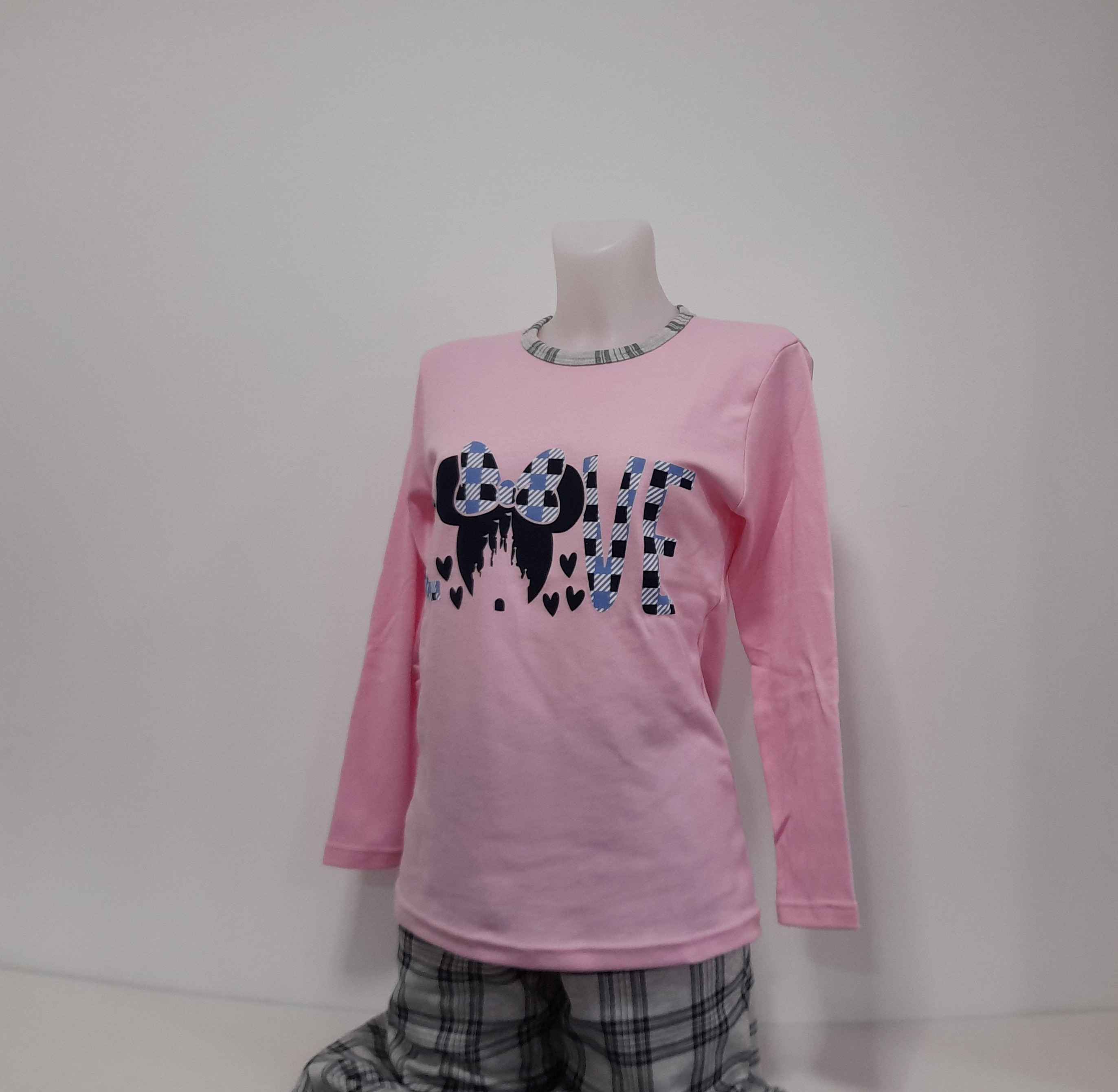 COMPOSIÇÃO E CARACTERÍSTICAS Ref.: Pij senhora LOVE ROSA Pijama de senhora cardado camisola de gola redonda calça com punho 50% Algodão 50% poliéster Fabricado em Portugal