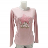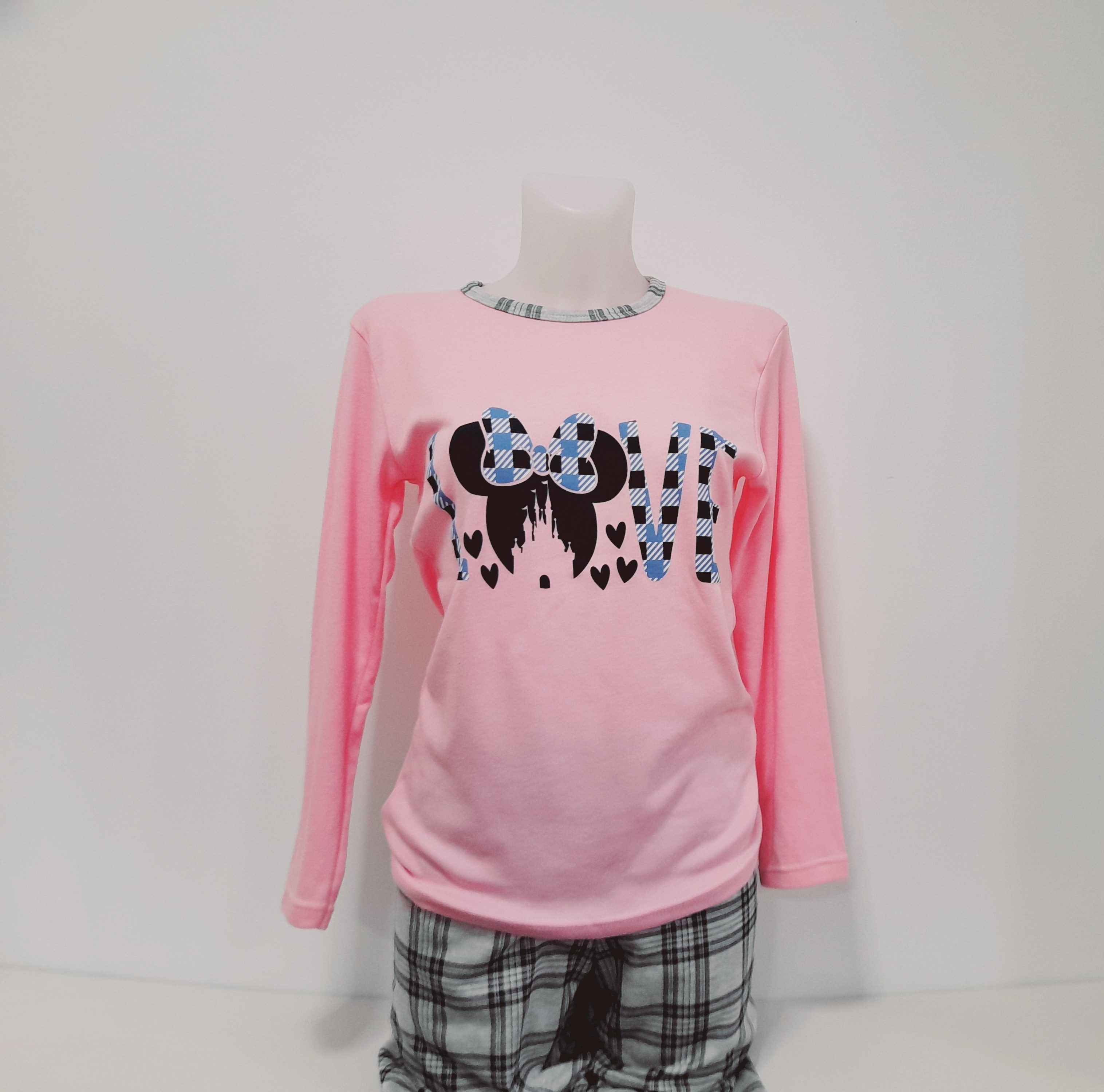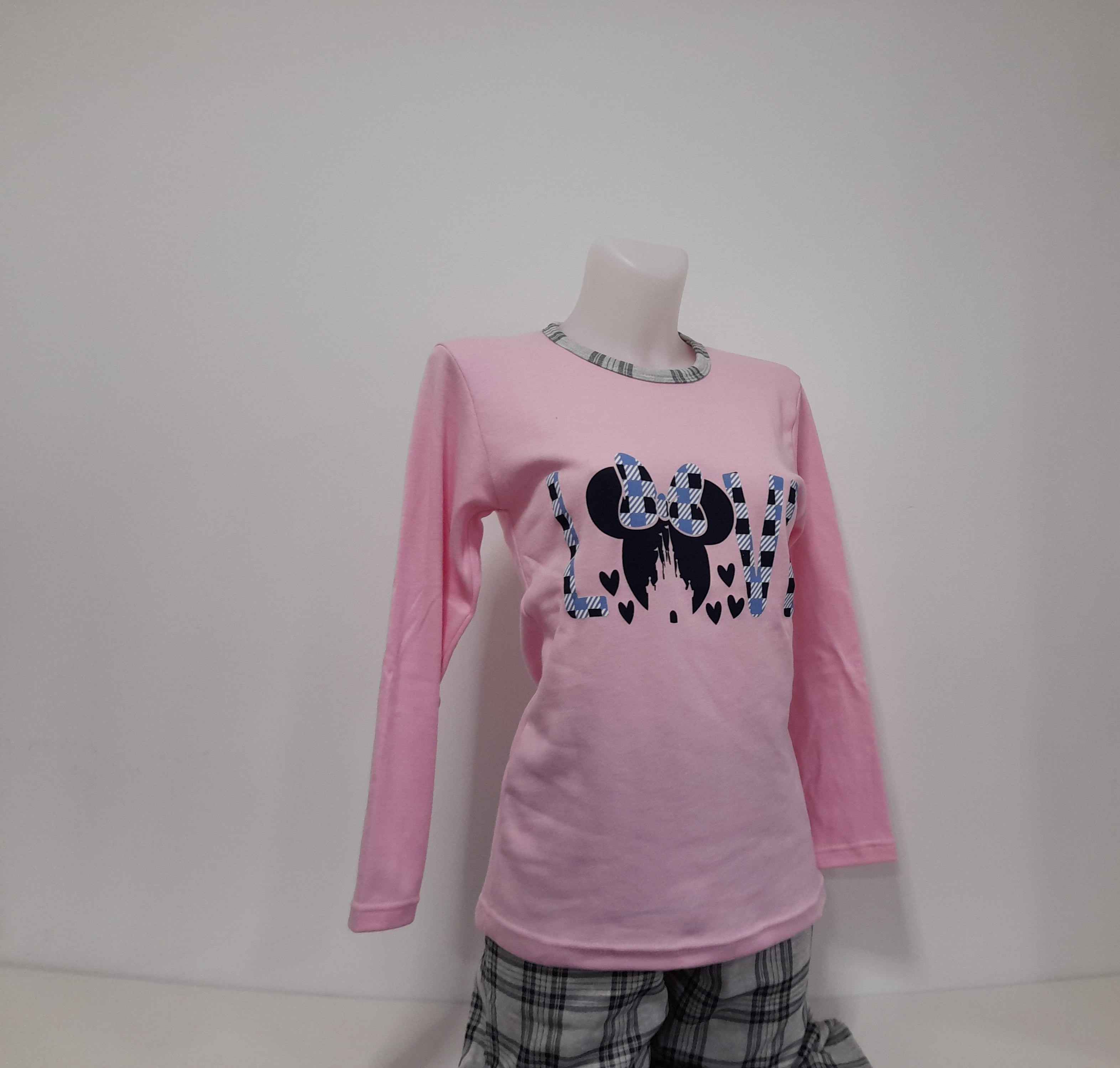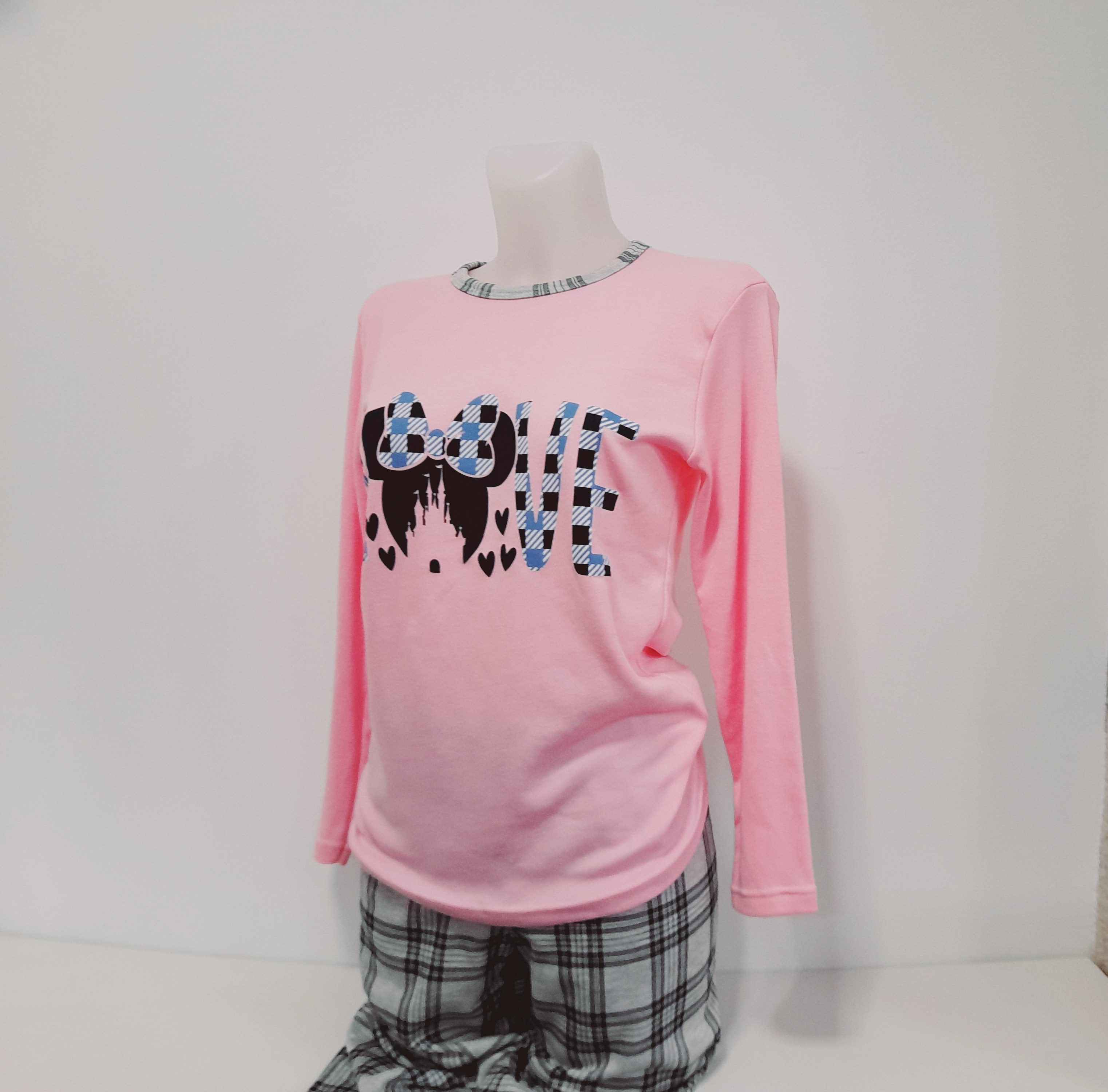 COMPOSIÇÃO E CARACTERÍSTICAS Ref.: Pij senhora LOVE ROSA Pijama de senhora cardado camisola de gola redonda calça com punho 50% Algodão 50% poliéster Fabricado em Portugal