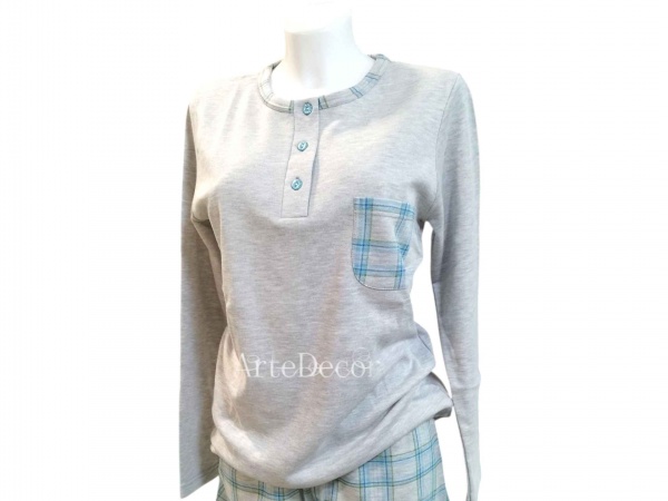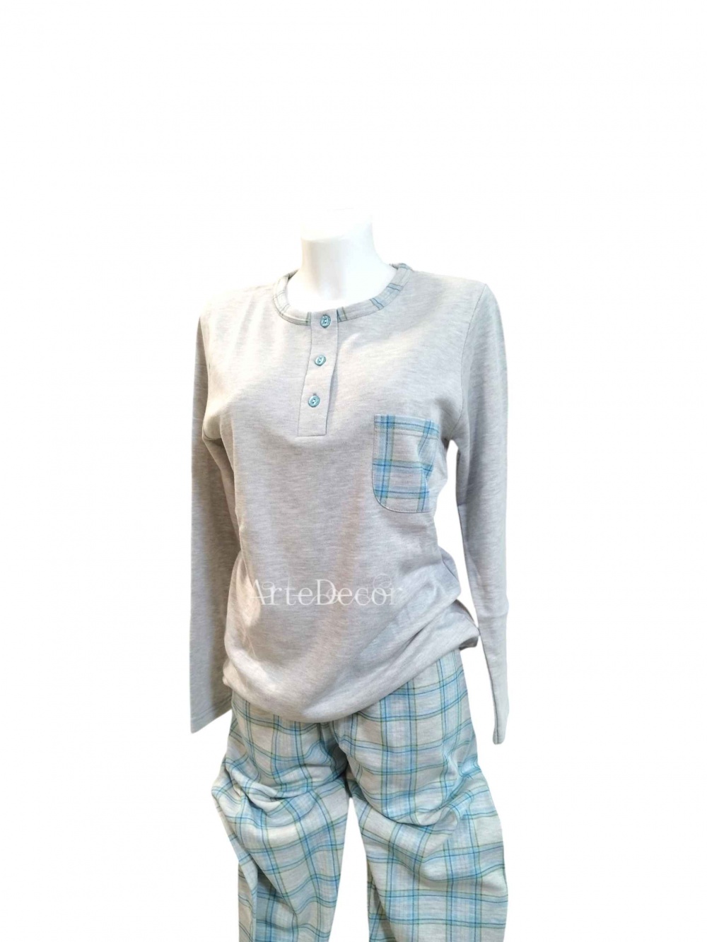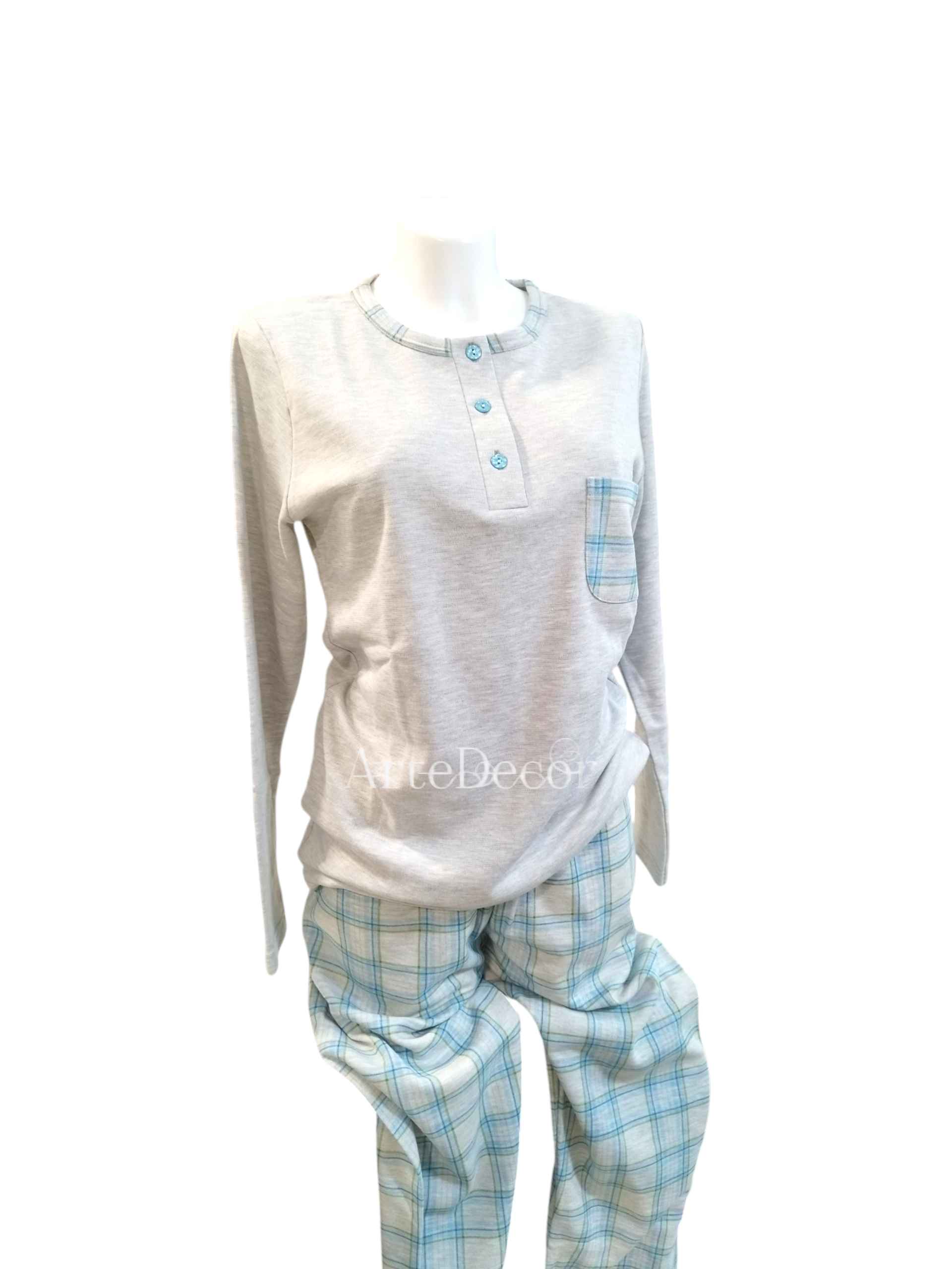 Envolva-se em conforto e tradição com este pijama de senhora, confecionado em tecido cardado 50% Algodão 50% Poliéster. Ideal para as noites mais frescas, o seu toque suave e quente proporciona uma sensação acolhedora desde o primeiro uso.