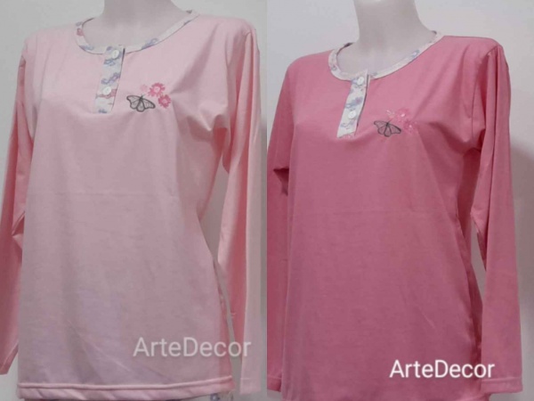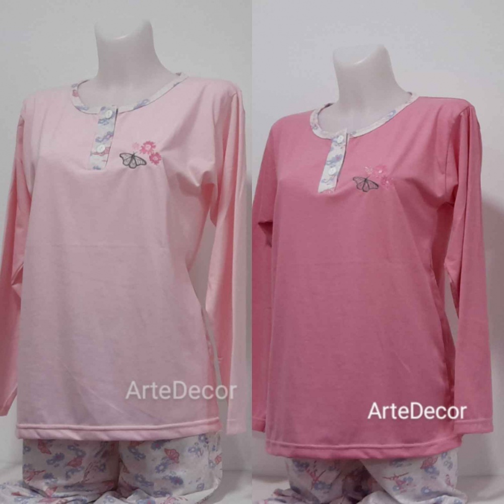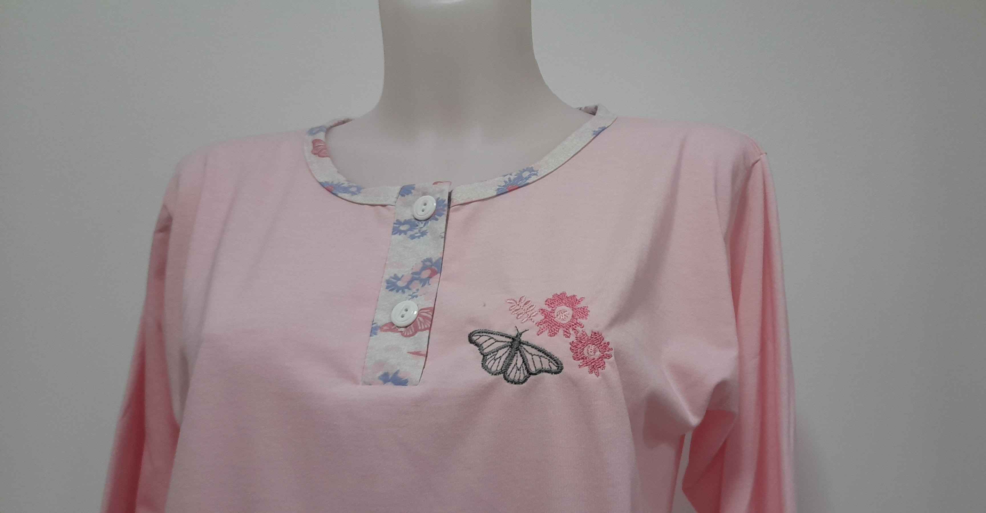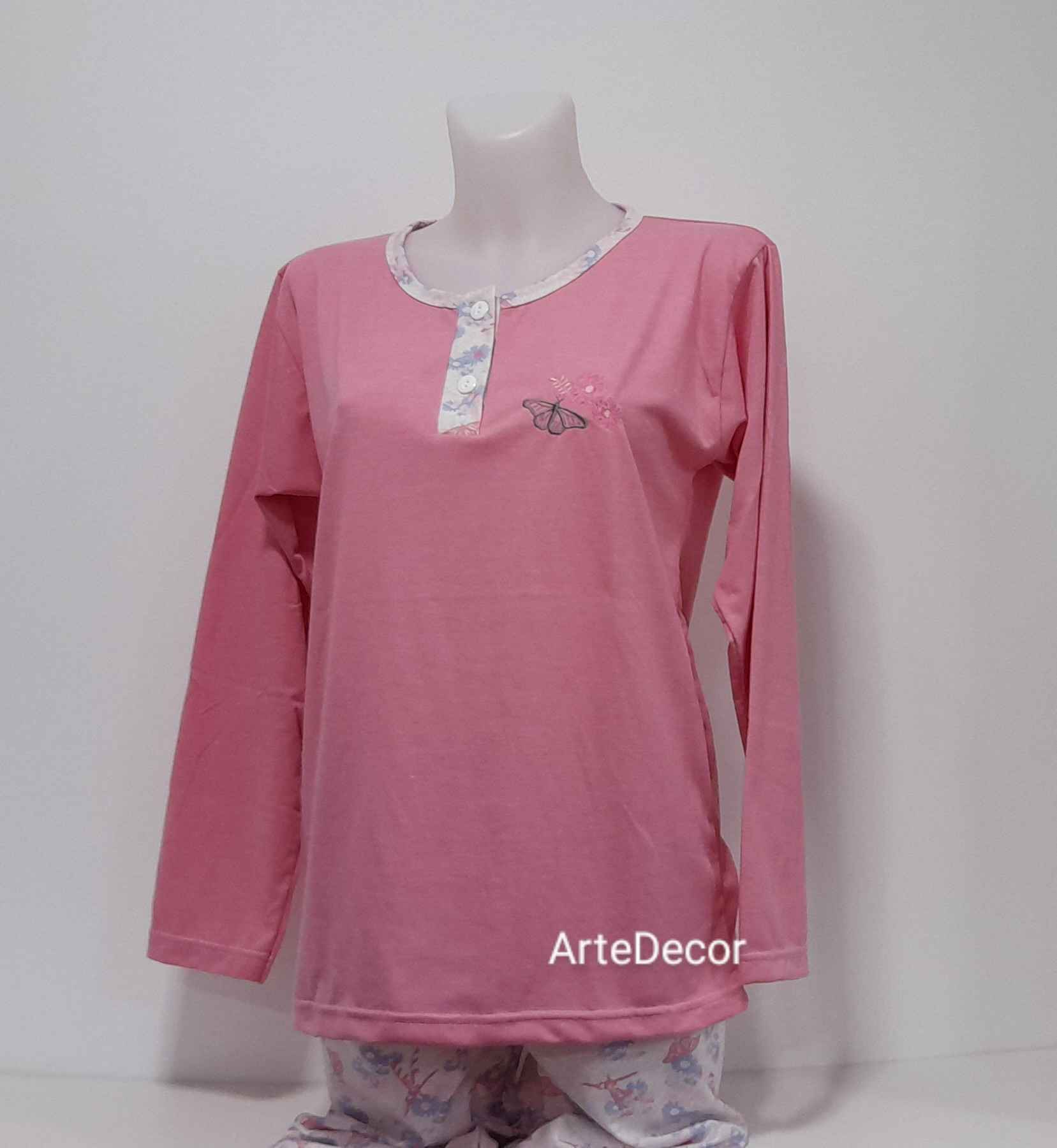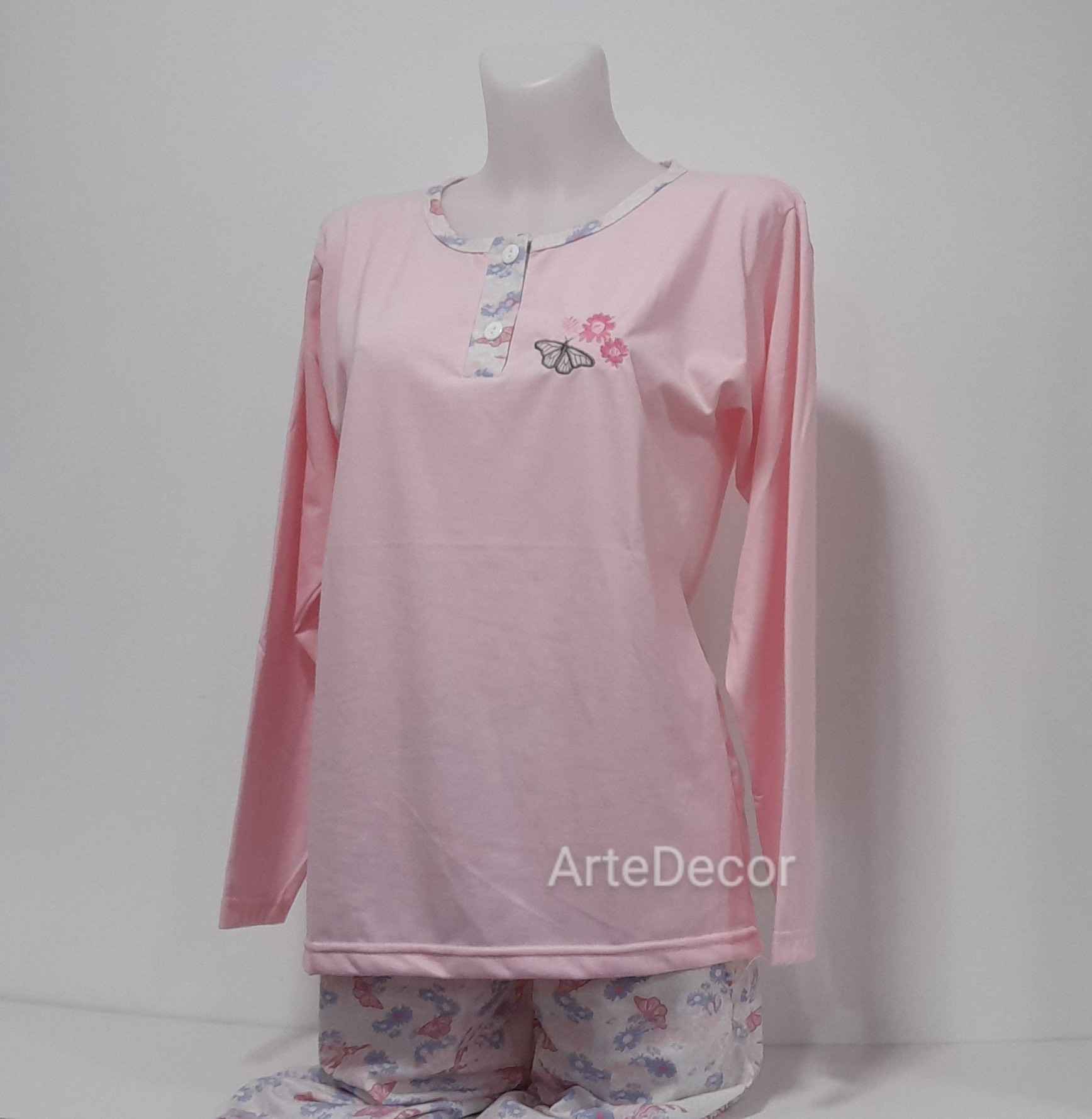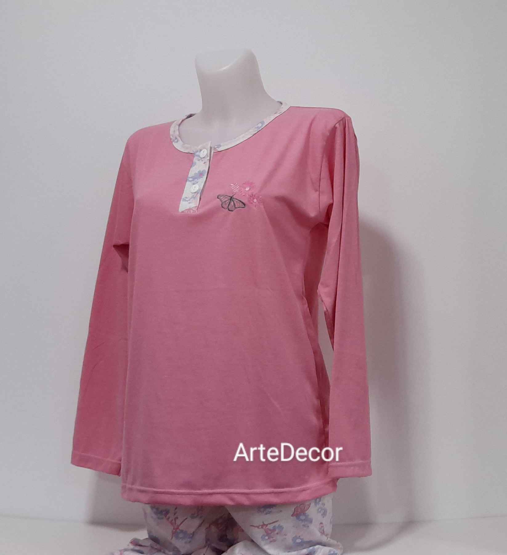 COMPOSIÇÃO E CARACTERÍSTICAS Ref.: Pij fino borboleta rosa Pijama de senhora fino manga comprida calça estampada com punho 50% algodão 50% algodão Fabricado em Portugal