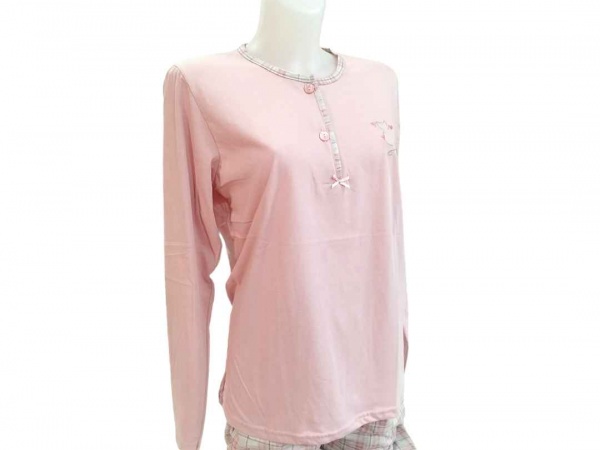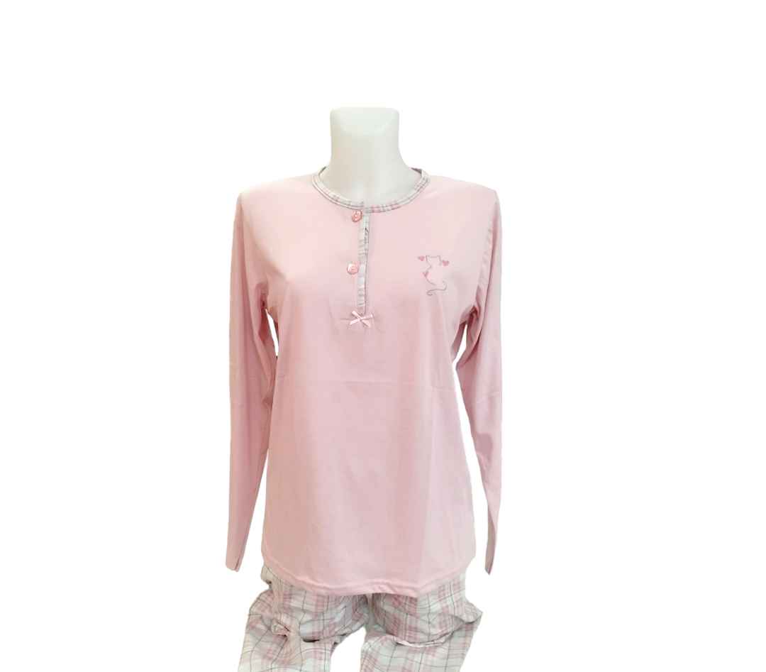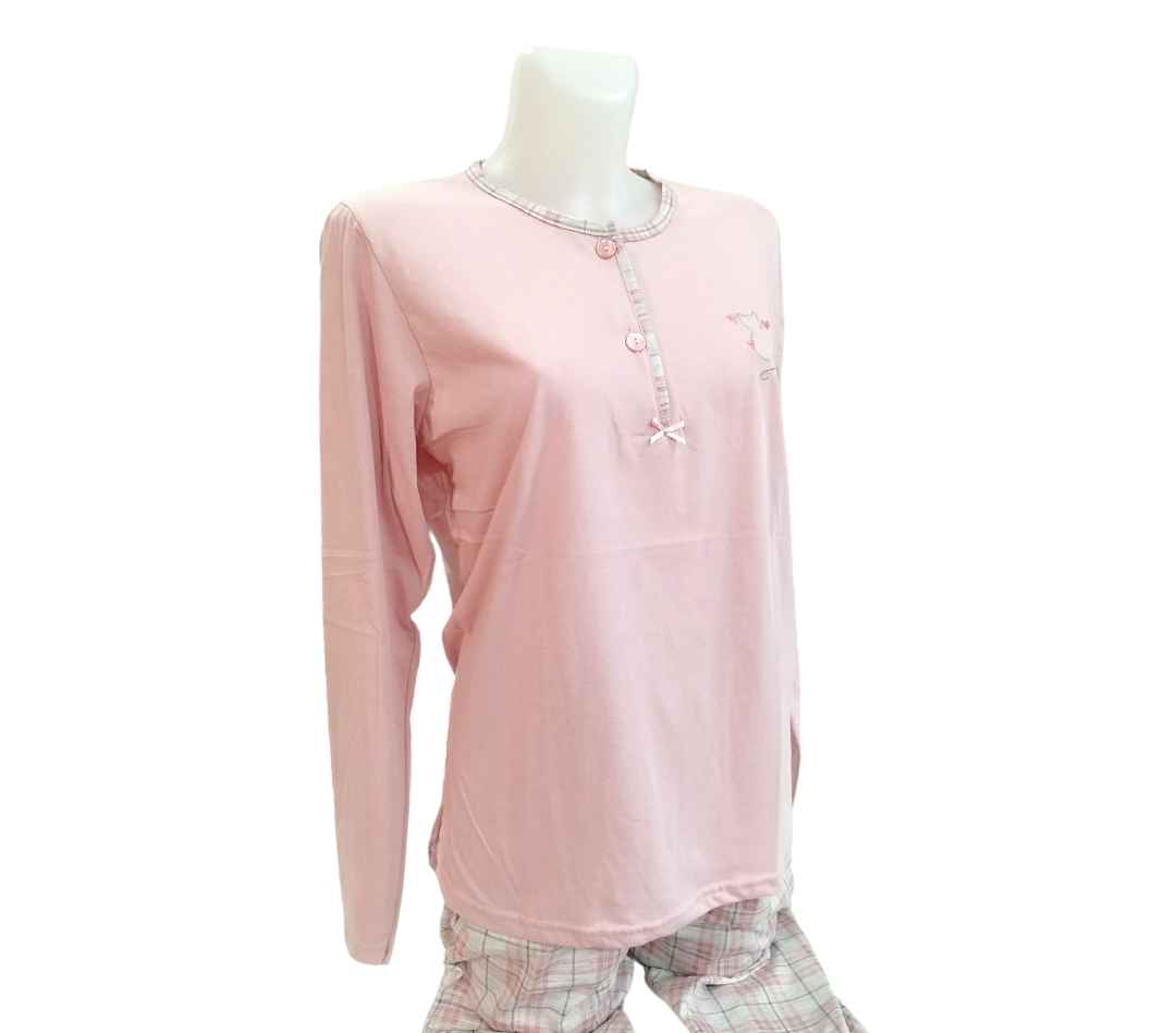 COMPOSIÇÃO E CARACTERÍSTICAS Ref.: Pij rosa quadrados Pijama de senhora primavera manga comprida calça com punho 50% algodão 50% algodão Fabricado em Portugal