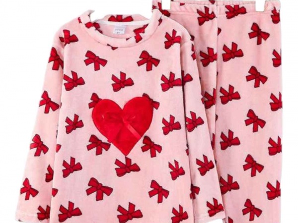 COMPOSIÇÃO E CARACTERÍSTICAS Ref.: Pij laço rosa Pijama senhora e criança de inverno Tecido coralina Muito suave e quente