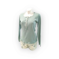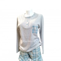 COMPOSIÇÃO E CARACTERÍSTICAS Ref.: Pij mae/filha AZ Pijama 100% Algodão cardado Camisola decote redondo Calça com punho Fabricado em Portugal