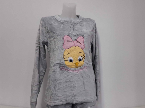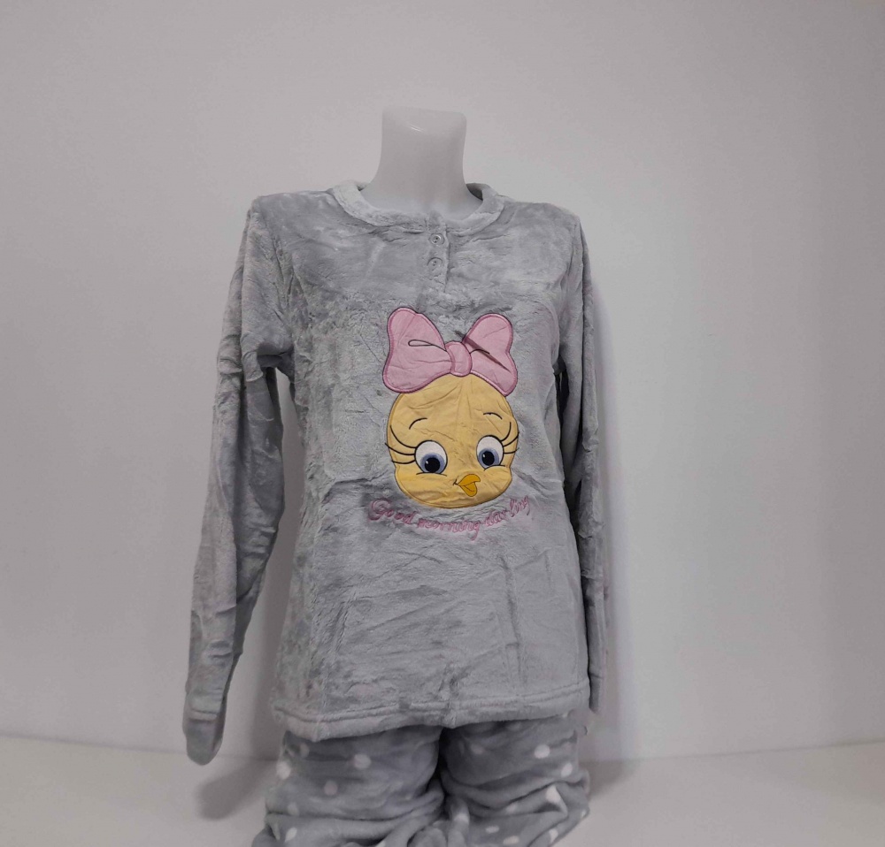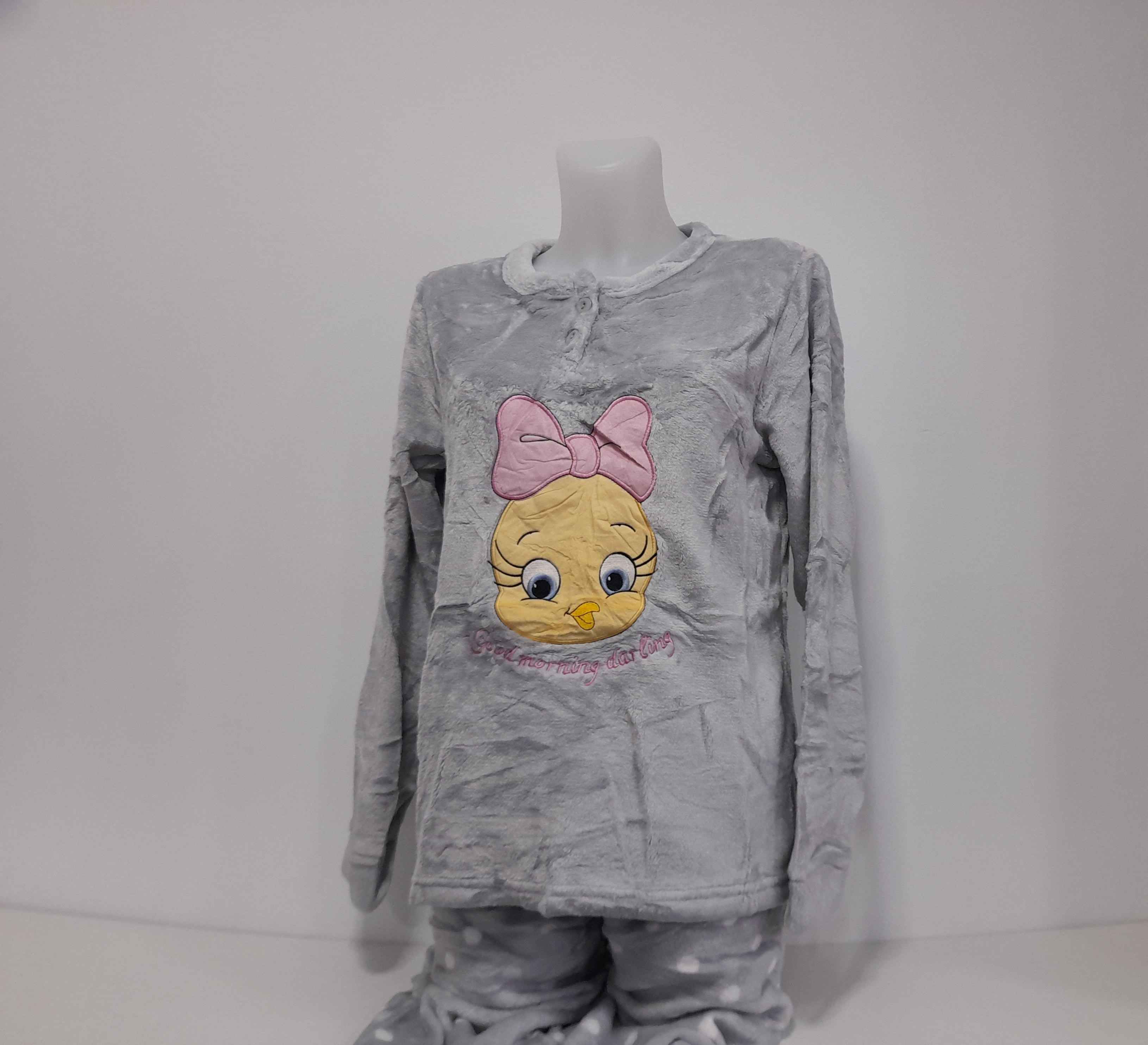 COMPOSIÇÃO E CARACTERÍSTICAS Ref.: Pij coral piupiu cinza Pijama de senhora e criança em coralina camisola com 2 botões calça com punho Muito quente e suave