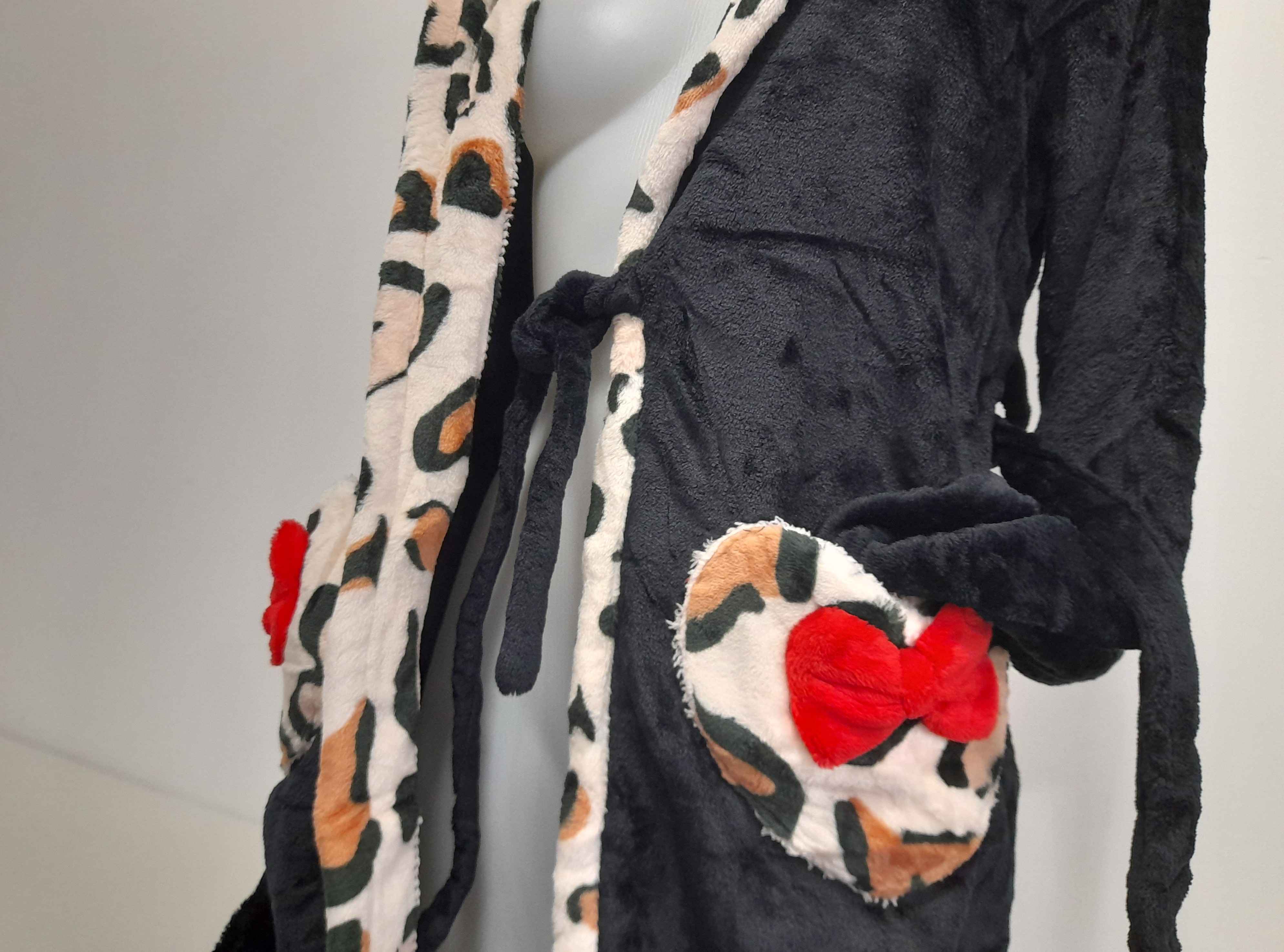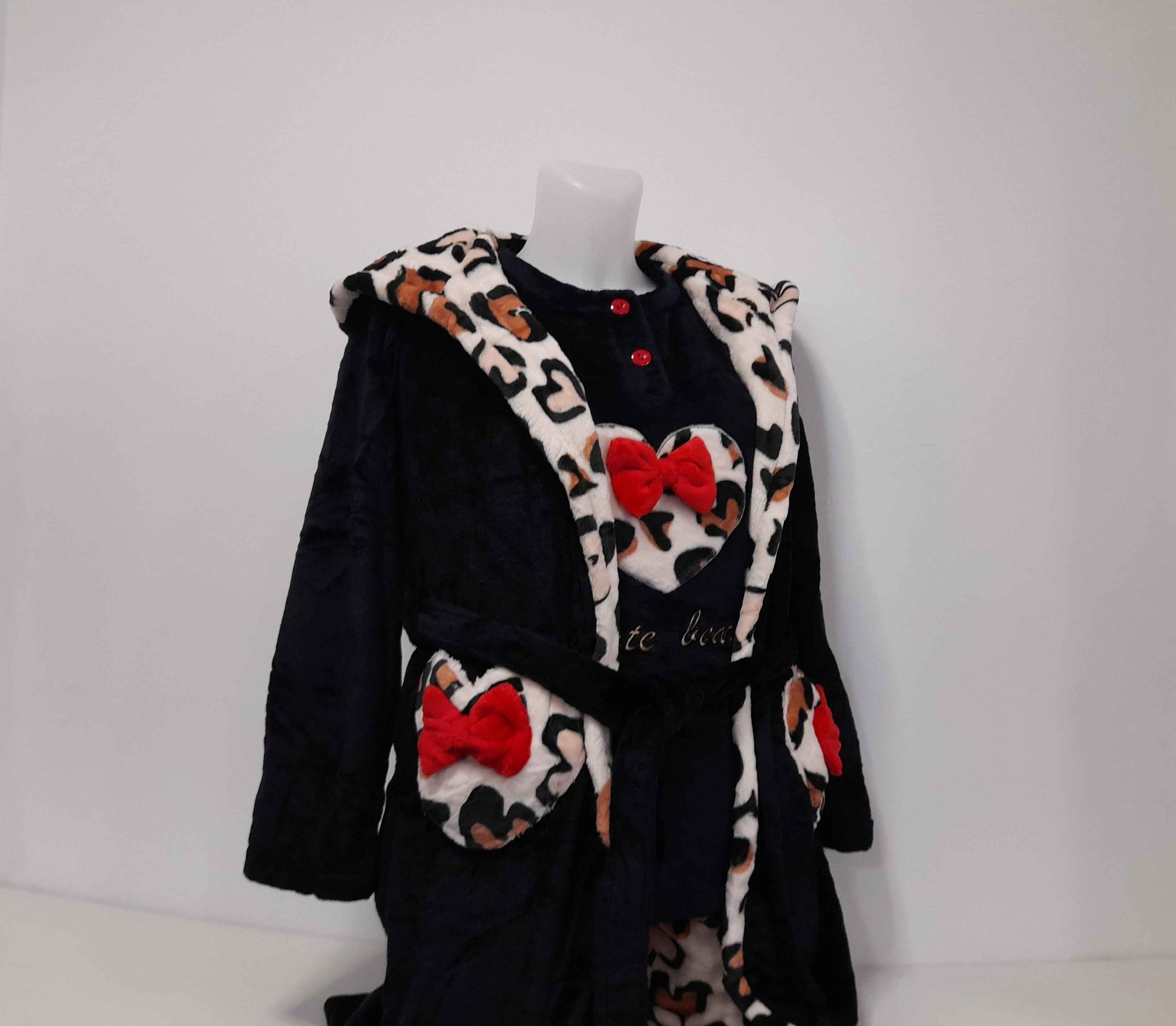 COMPOSIÇÃO E CARACTERÍSTICAS Ref.: Robe senh coral coração preto Robe com cinto e capuz de senhora Tecido: coralina Muito quente e suave