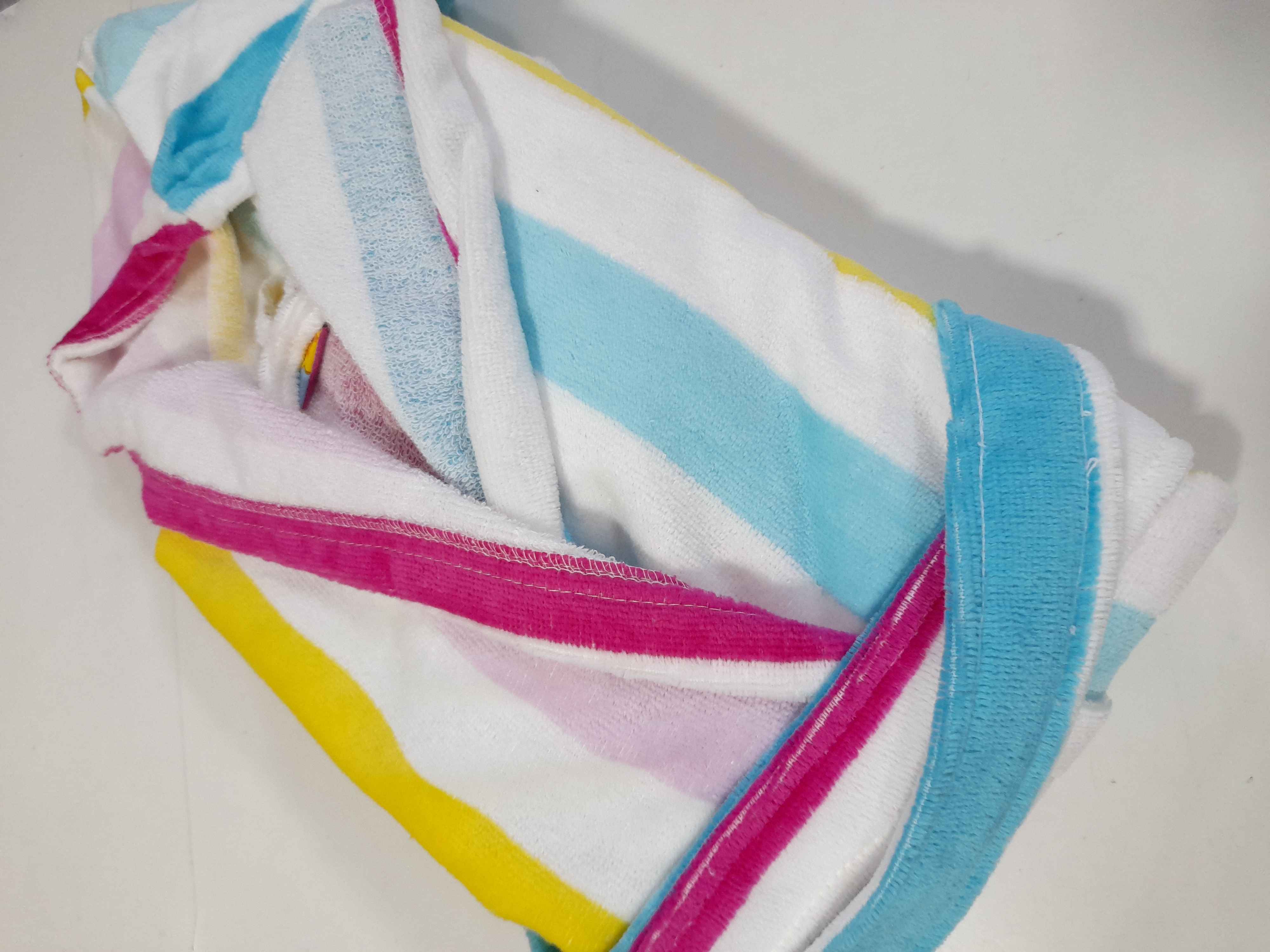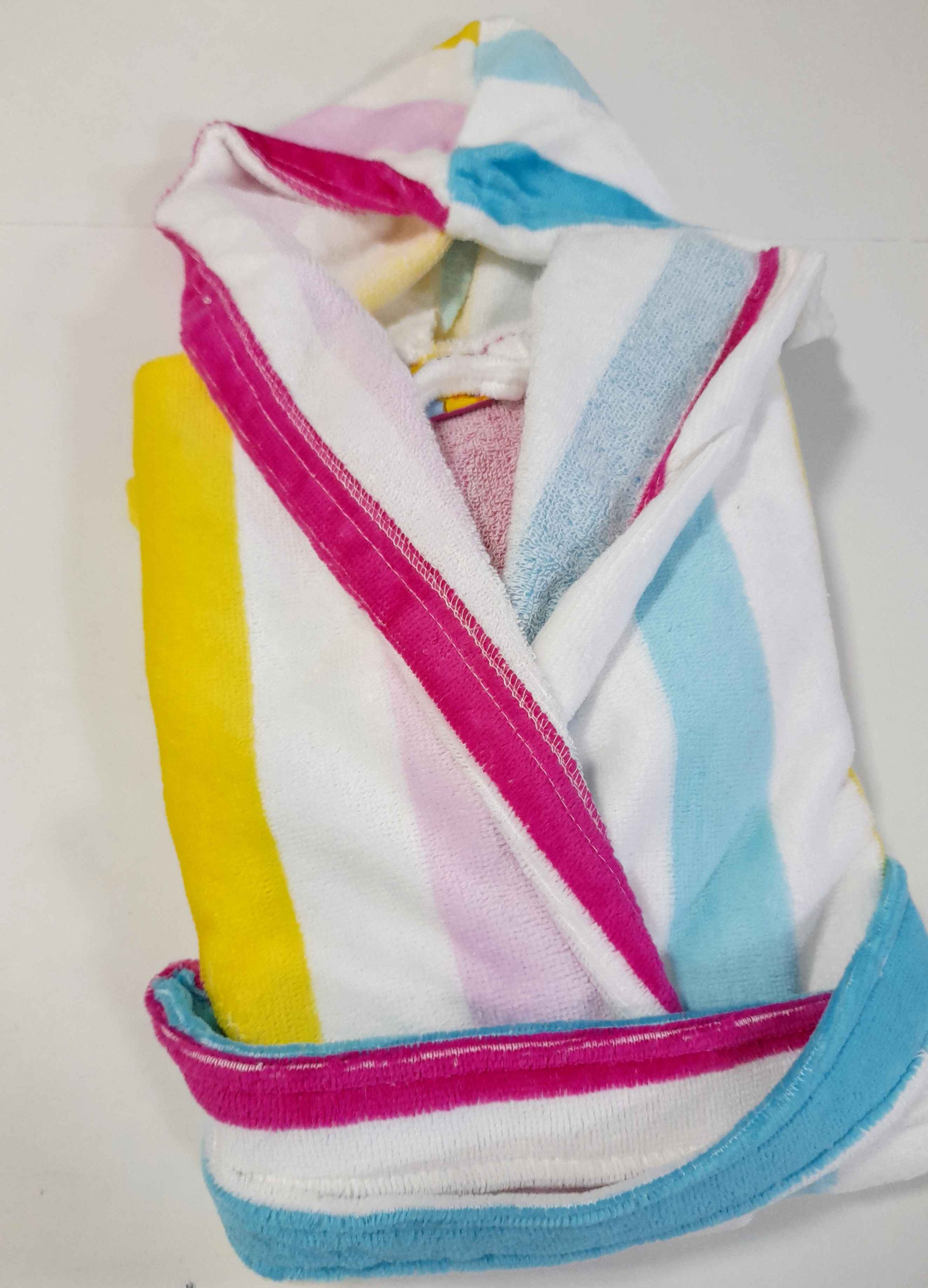COMPOSIÇÃO E CARACTERÍSTICAS Ref.: RB ARCO IRIS Robe em felpo laminado com capuz 100% Algodão Fabricado em Portugal
