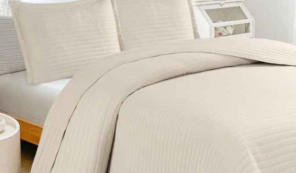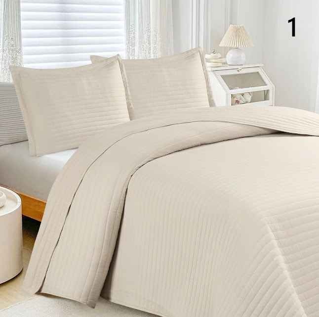 COMPOSIÇÃO E CARACTERÍSTICAS Ref.: Colcha canelada Bege Colcha ideal para verão cor telha para cama de casal 250x260cm Incluí 2 Fronhas 50x70cm 100% Poliéster
