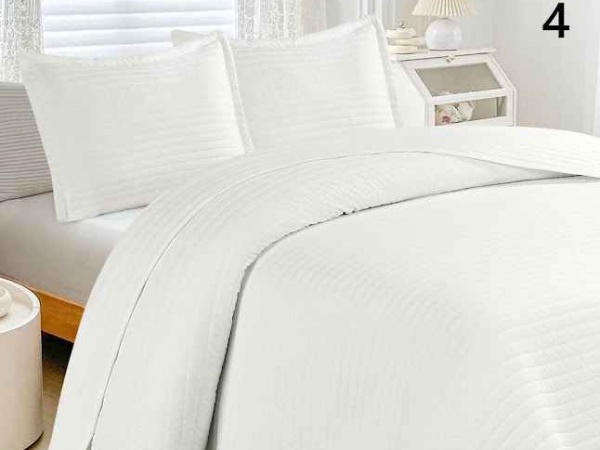 COMPOSIÇÃO E CARACTERÍSTICAS Ref.: Colcha canelada branco Colcha ideal para verão toda branca para cama de casal 250x260cm Incluí 2 Fronhas 50x70cm 100% Poliéster