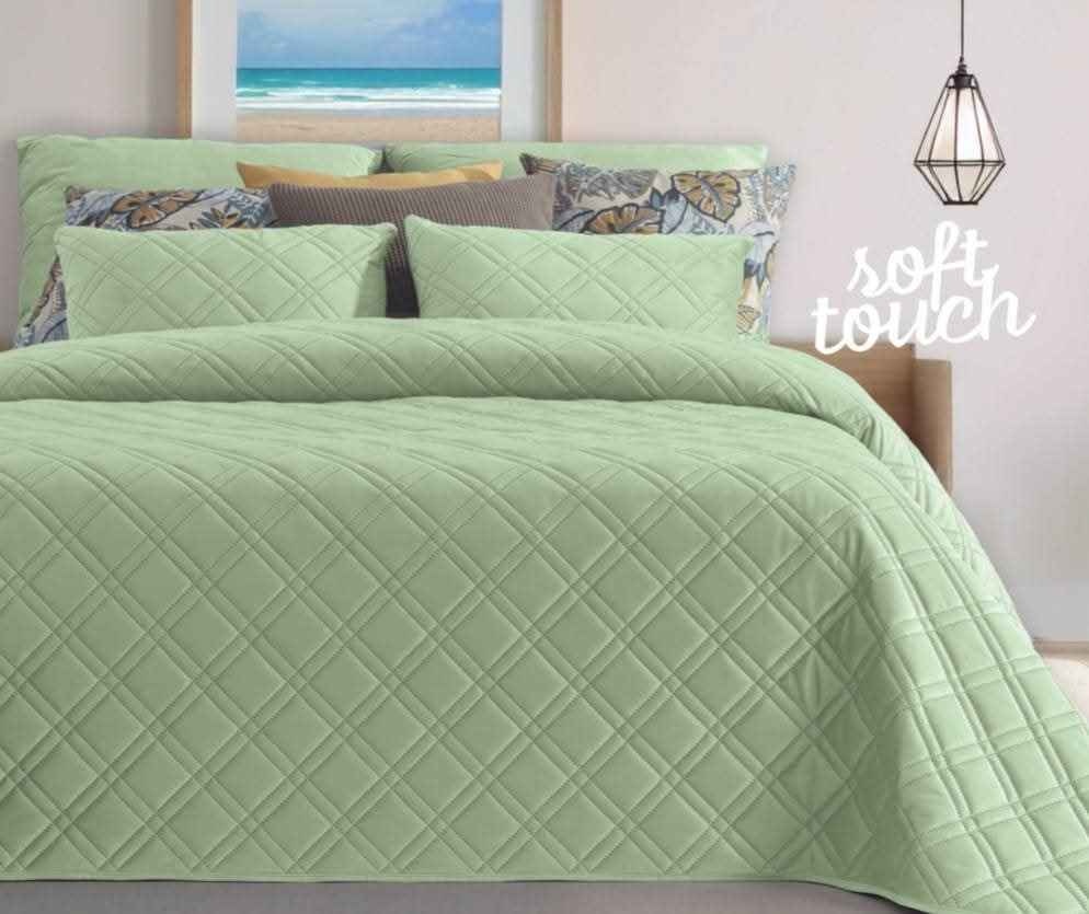 COMPOSIÇÃO E CARACTERÍSTICAS Ref.: Colcha Vânia verde 1 colcha em veludo muito suave, dupla face 2 almofadas cheias Fabricado em Portugal