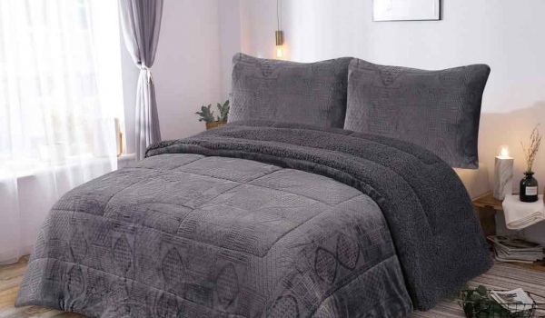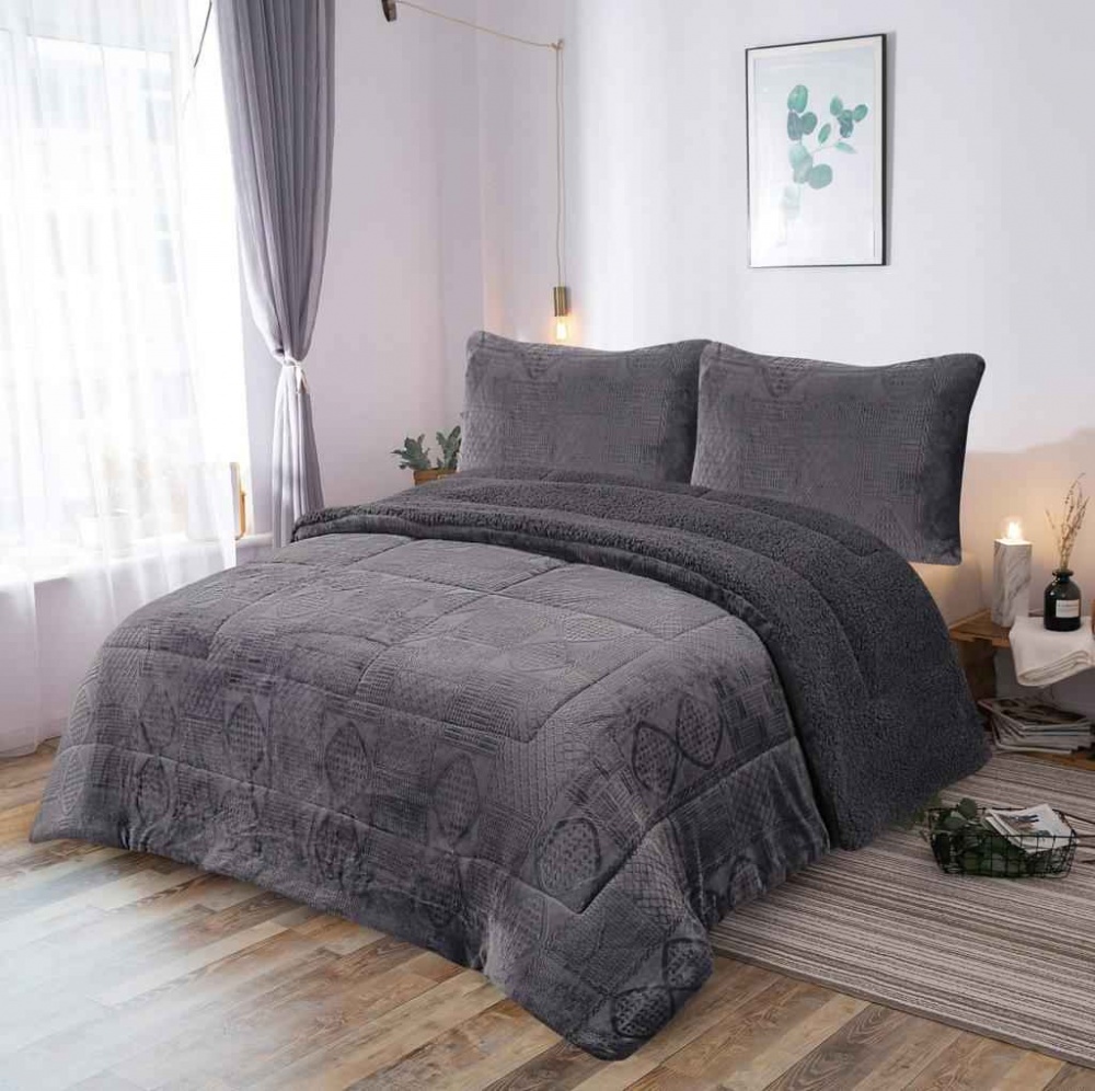 Edredon com pêlo de borrego sherpa Cinzento escuro
