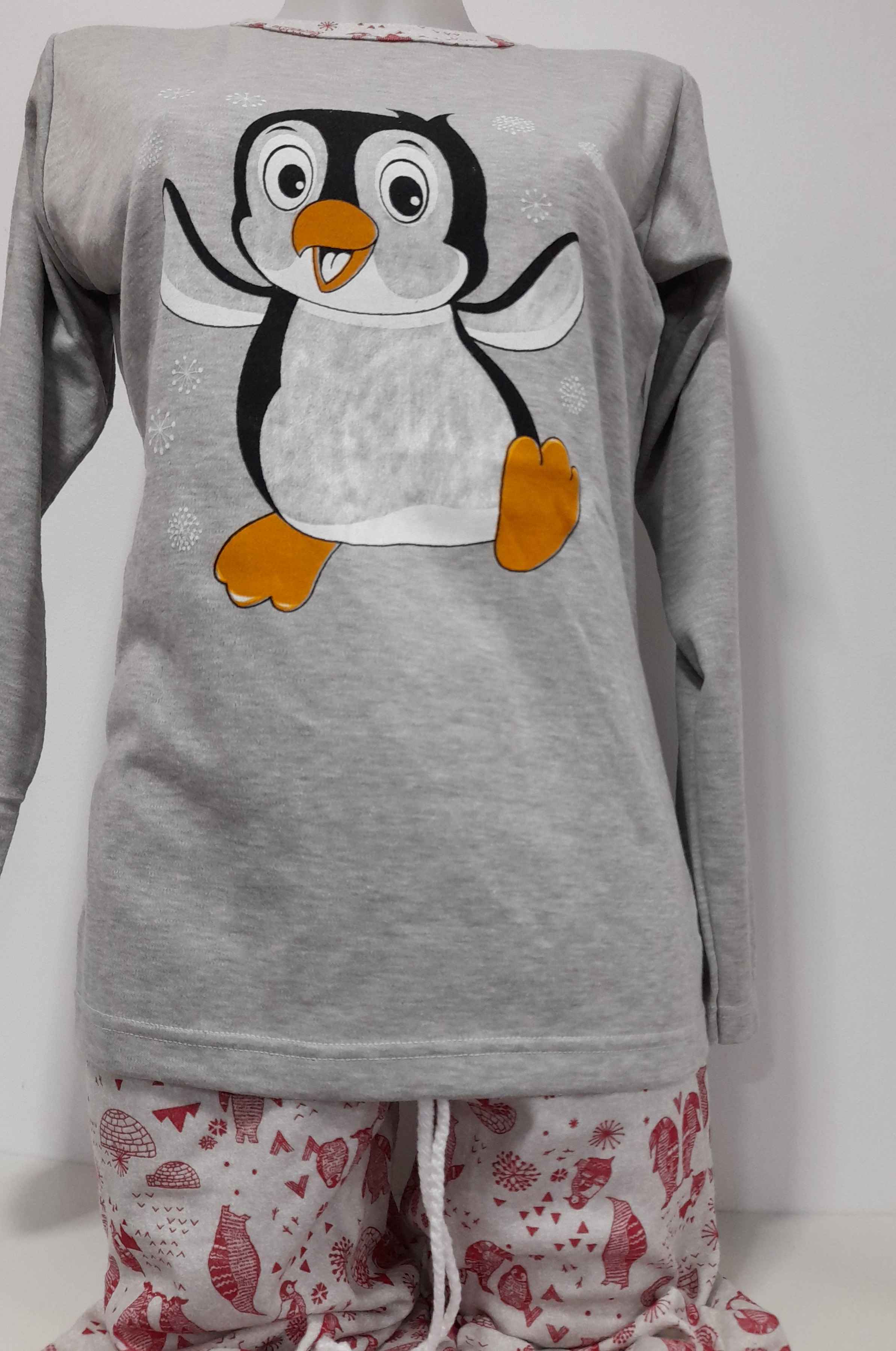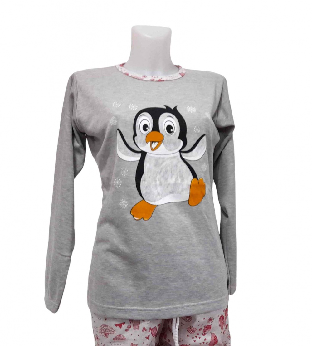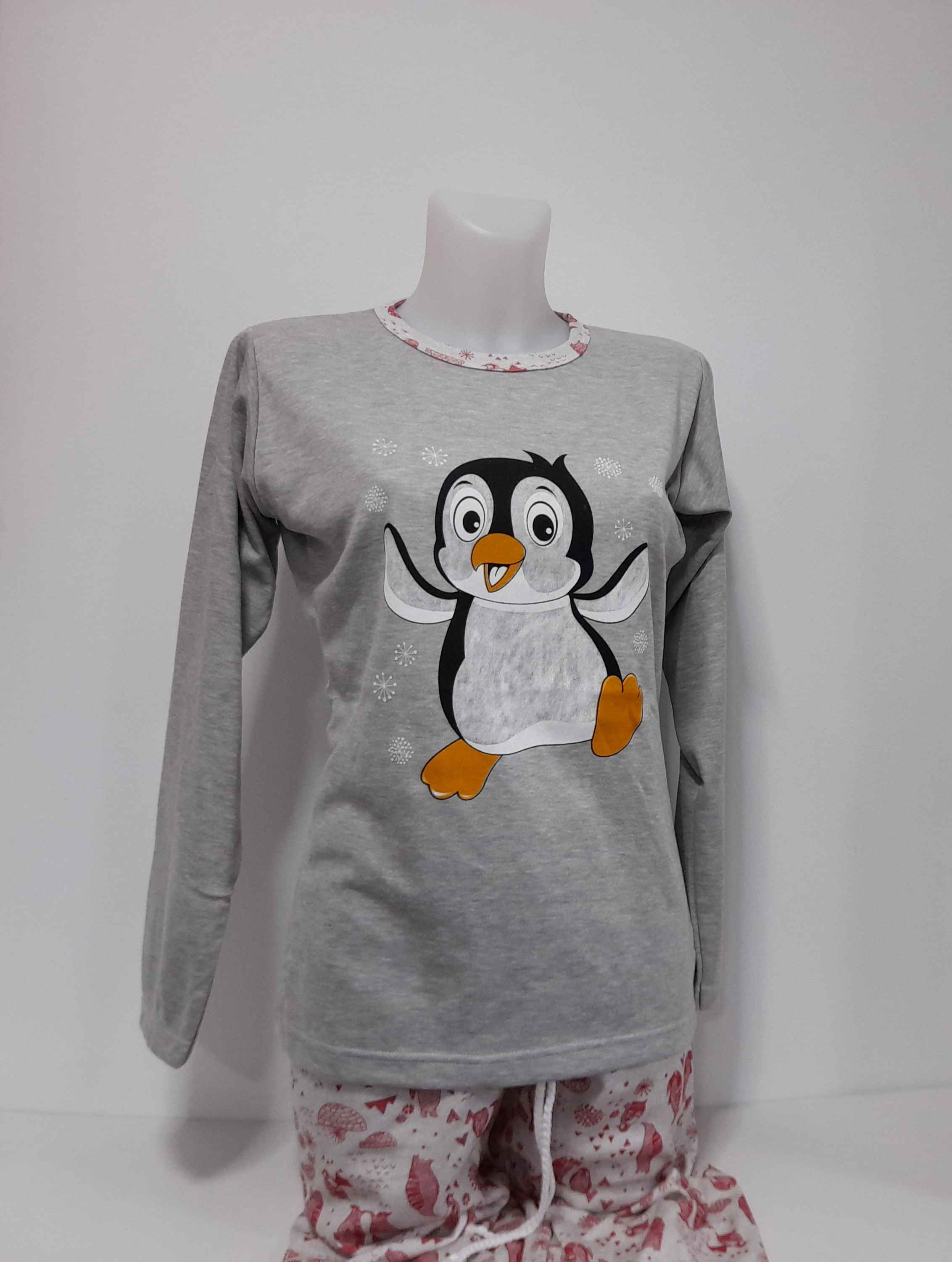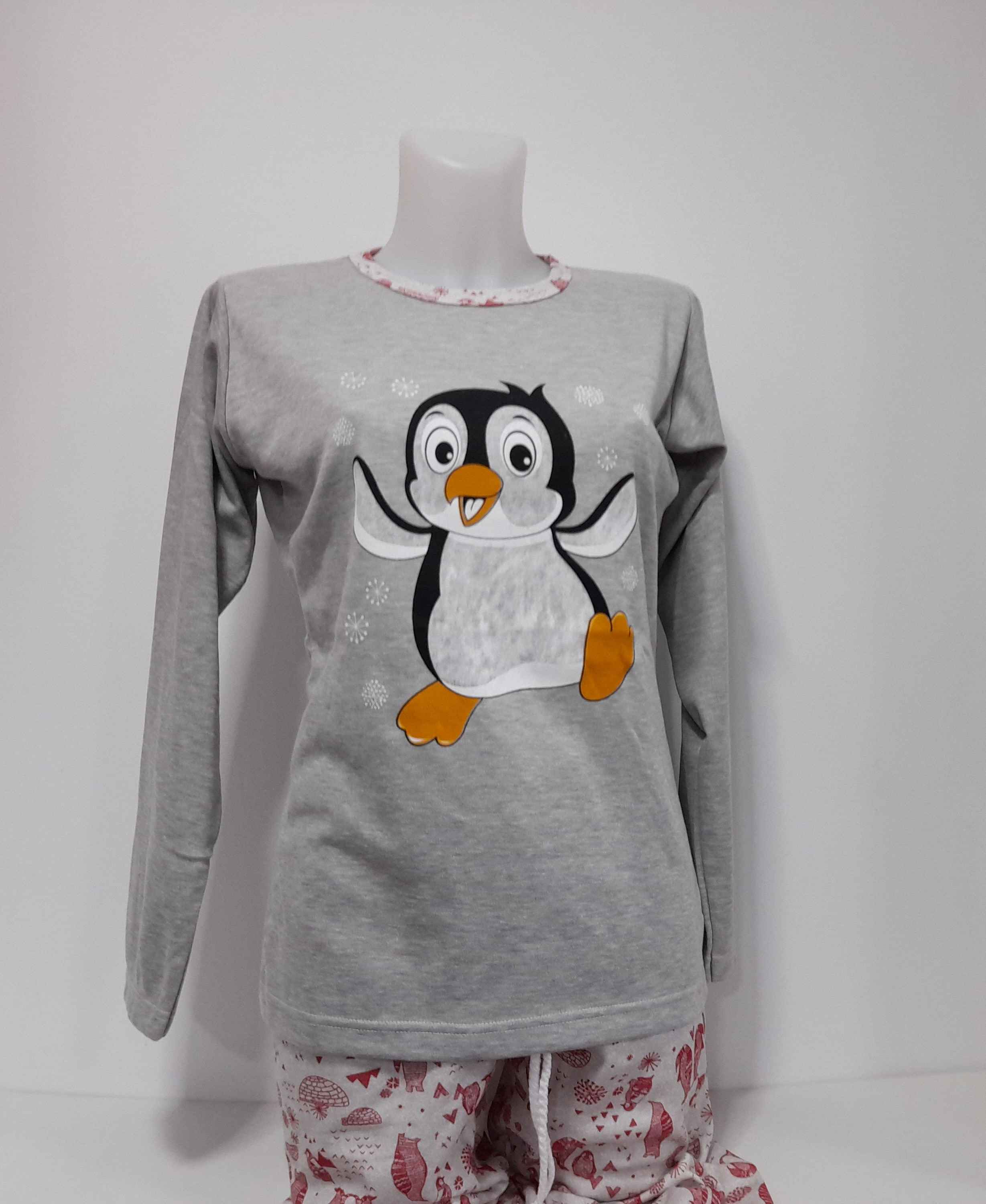 COMPOSIÇÃO E CARACTERÍSTICAS Ref.: Pij cinza pinguim Pijama de criança cardado camisola de gola redonda calça com punho 50% Algodão 50% poliéster Fabricado em Portugal