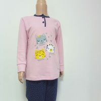 COMPOSIÇÃO E CARACTERÍSTICAS Ref.: Pij pinguim rosa Pijama de criança cardado camisola de gola redonda calça com punho 50% Algodão 50% poliéster Fabricado em Portugal