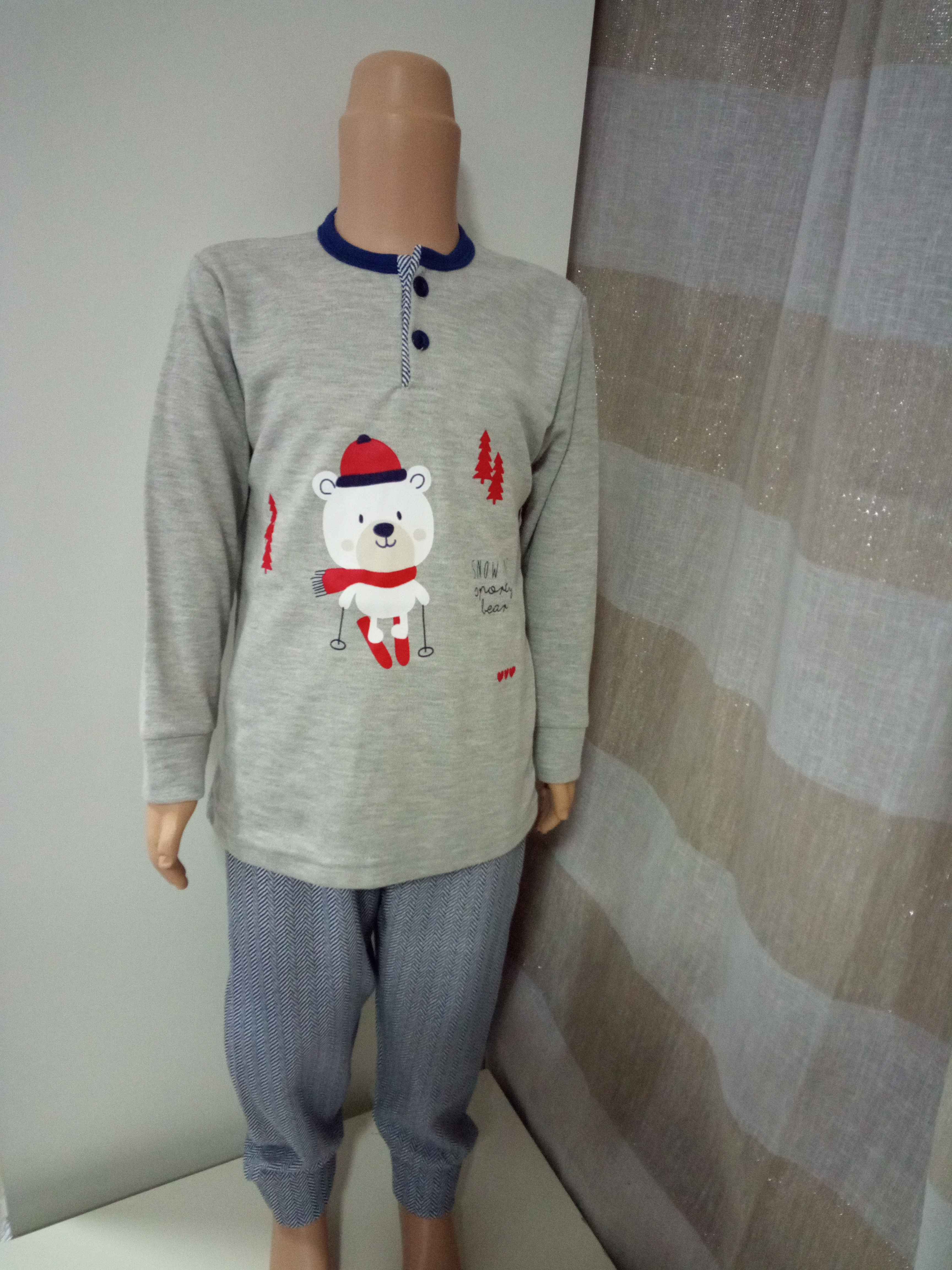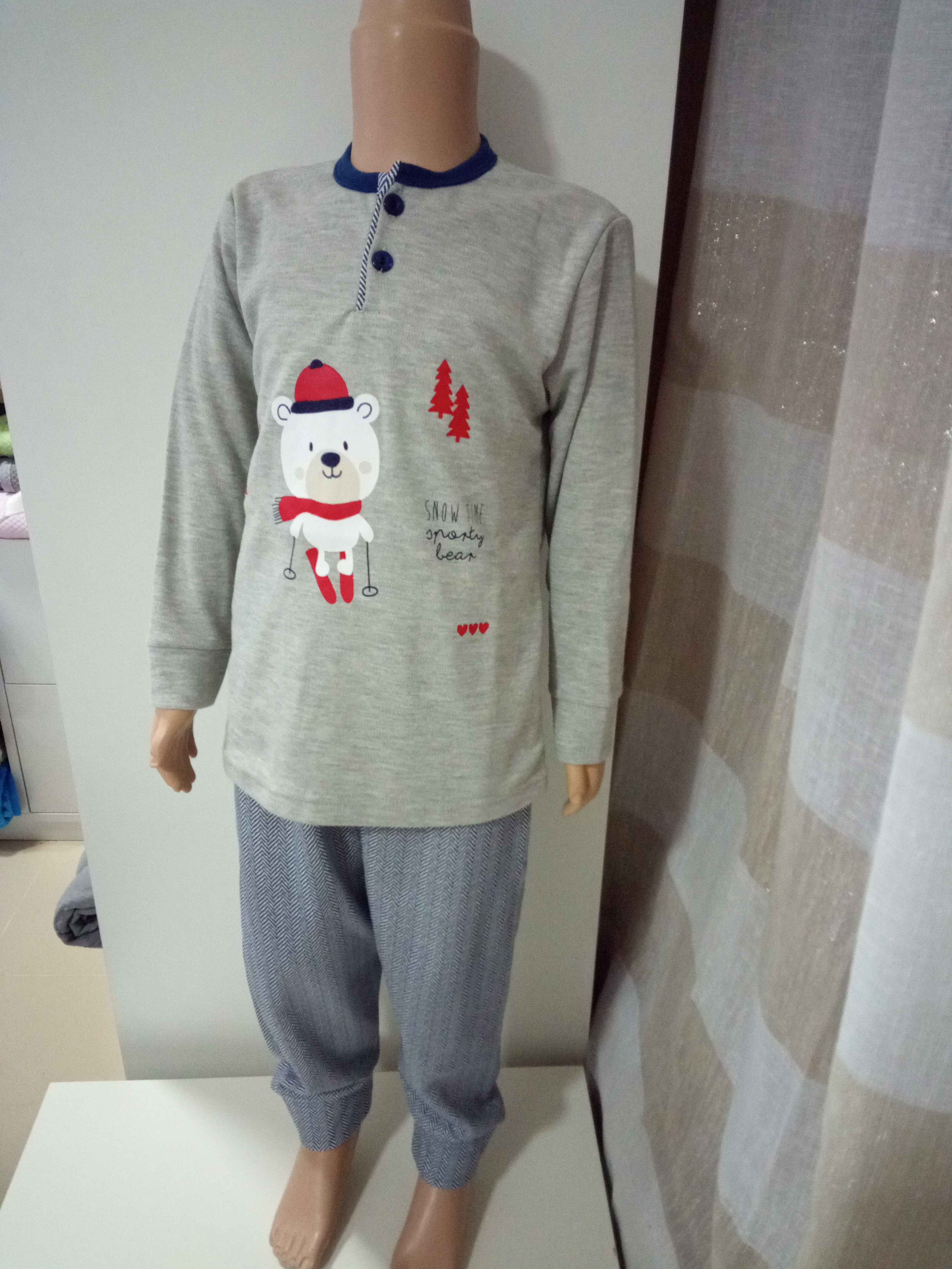COMPOSIÇÃO E CARACTERÍSTICAS Ref.: PIJ 84 MENINO Pijama de menino cardado Manga comprida Calça estampada com punho Fabricado em Portugal