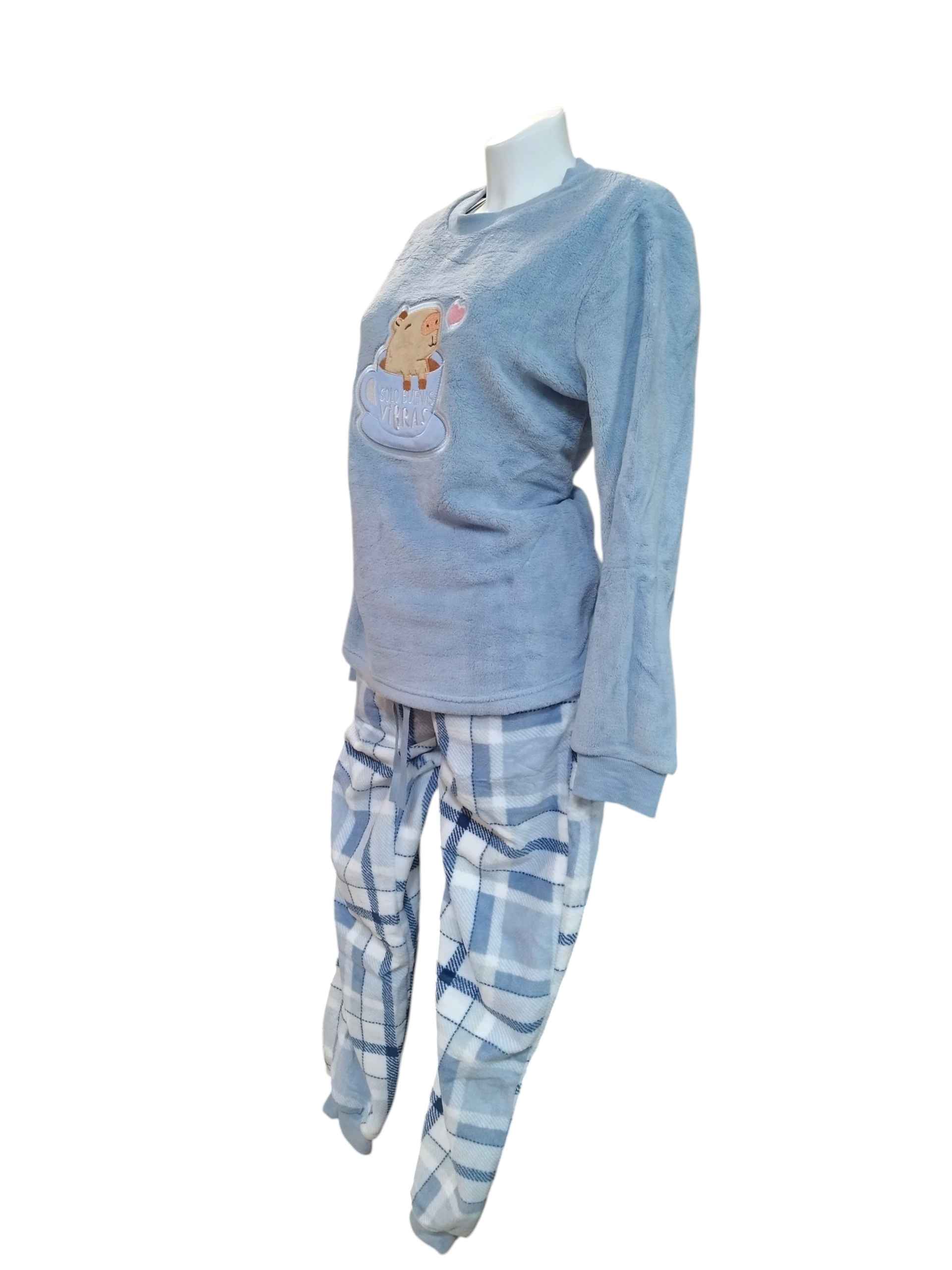 Envolva-se em conforto absoluto com o nosso pijama de senhora em coralina, perfeito para os dias mais frios. Confeccionado em tecido coralina de alta qualidade, este pijama destaca-se pela sua suavidade incomparável, proporcionando uma sensação aconchegante e quente desde o primeiro toque.