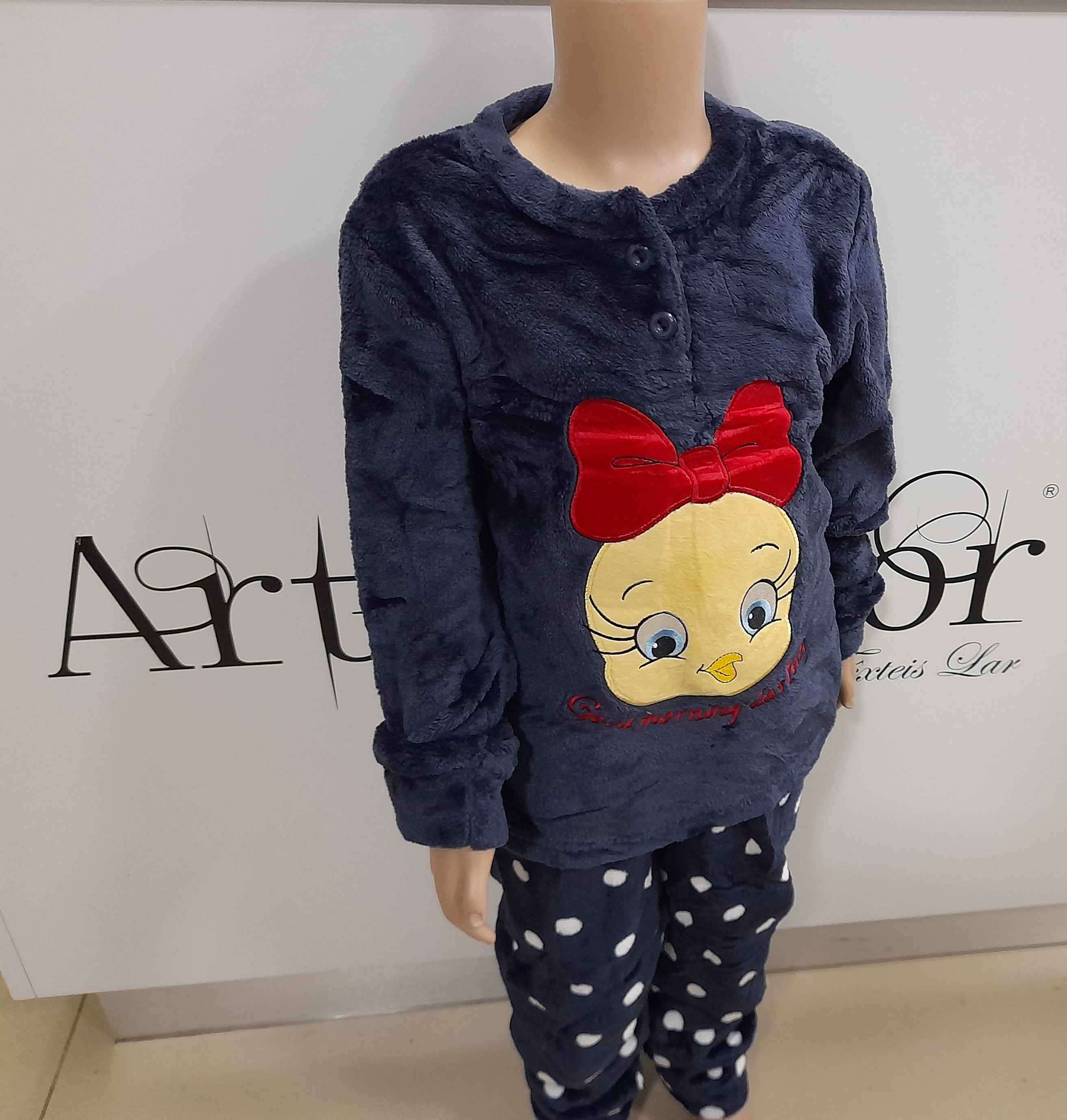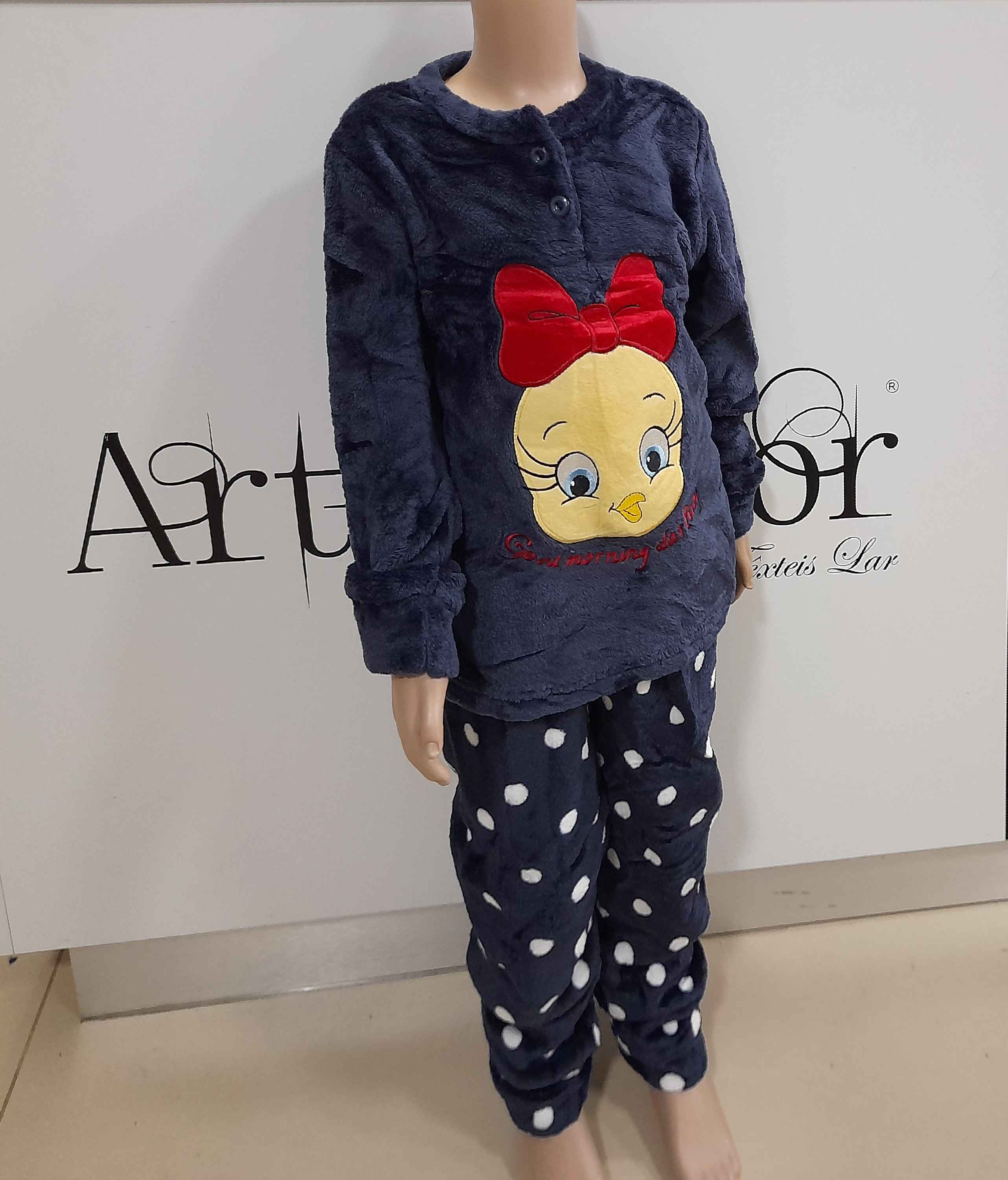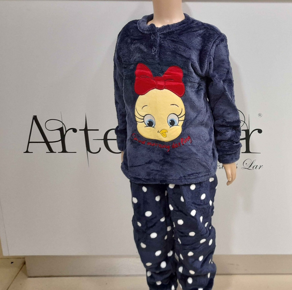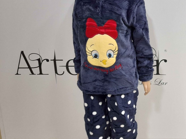 COMPOSIÇÃO E CARACTERÍSTICAS Ref.: Pij coral piupiu Azul Pijama de senhora e criança em coralina camisola com 2 botões calça com punho Muito quente e suave