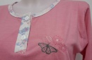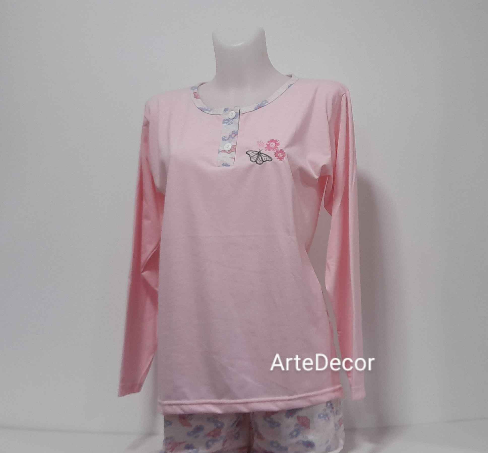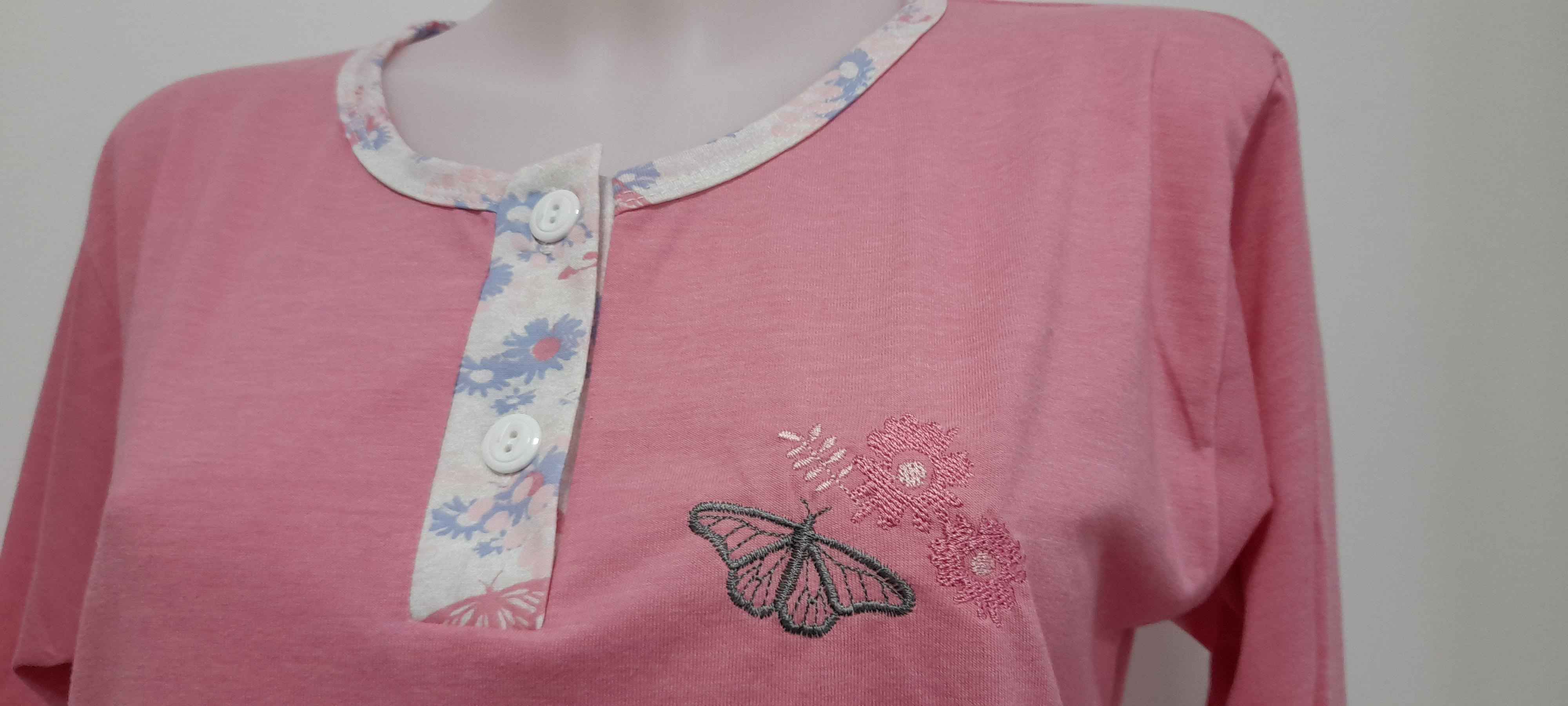 COMPOSIÇÃO E CARACTERÍSTICAS Ref.: Pij fino borboleta rosa Pijama de senhora fino manga comprida calça estampada com punho 50% algodão 50% algodão Fabricado em Portugal