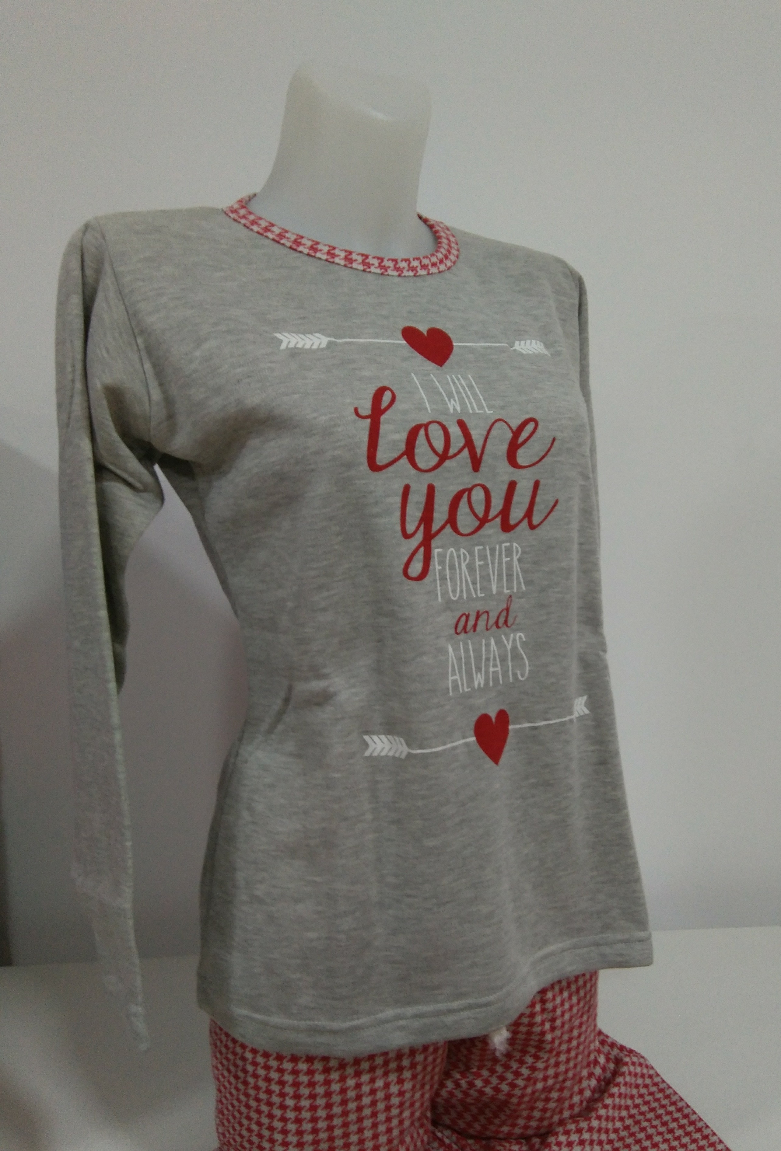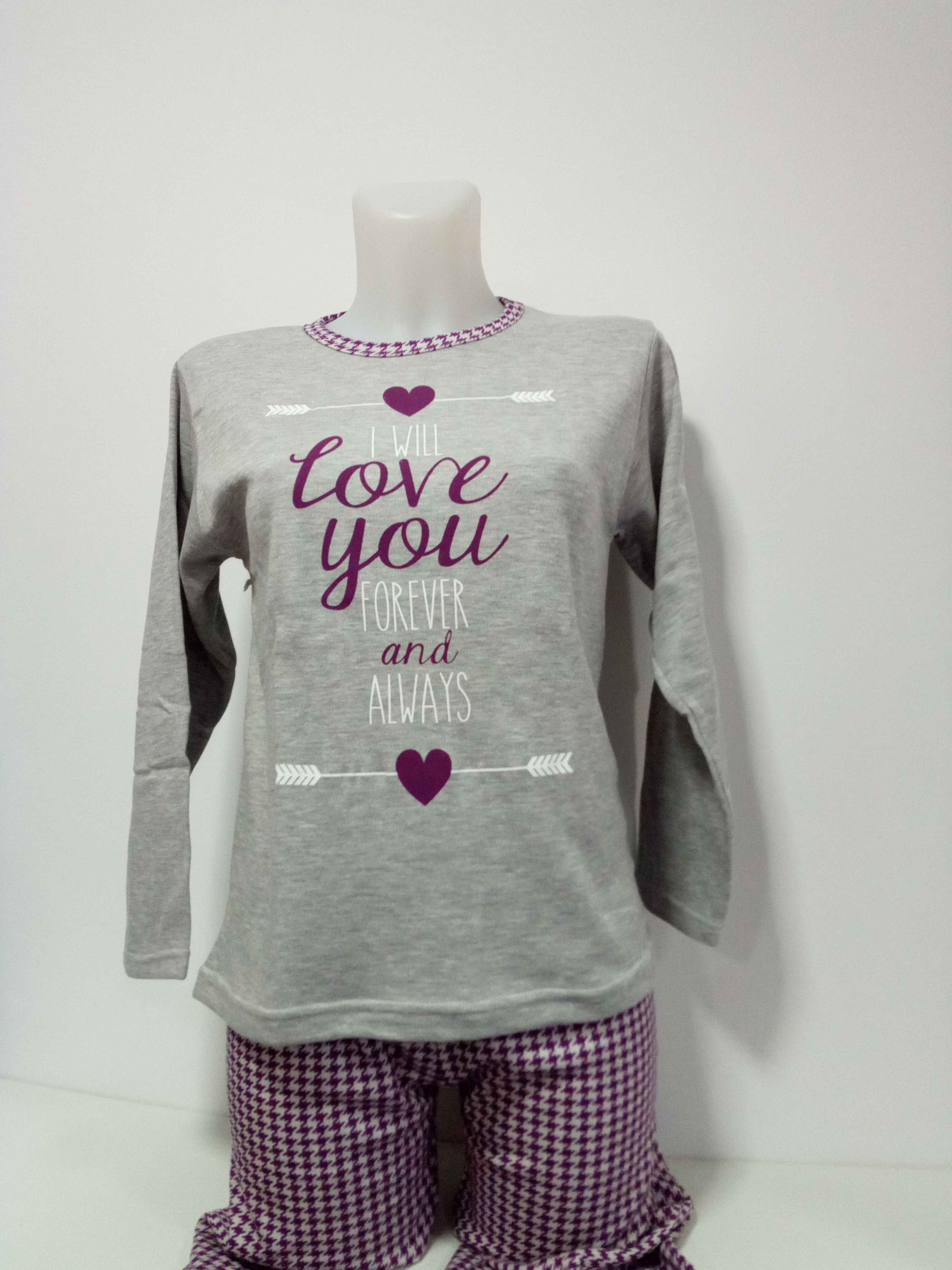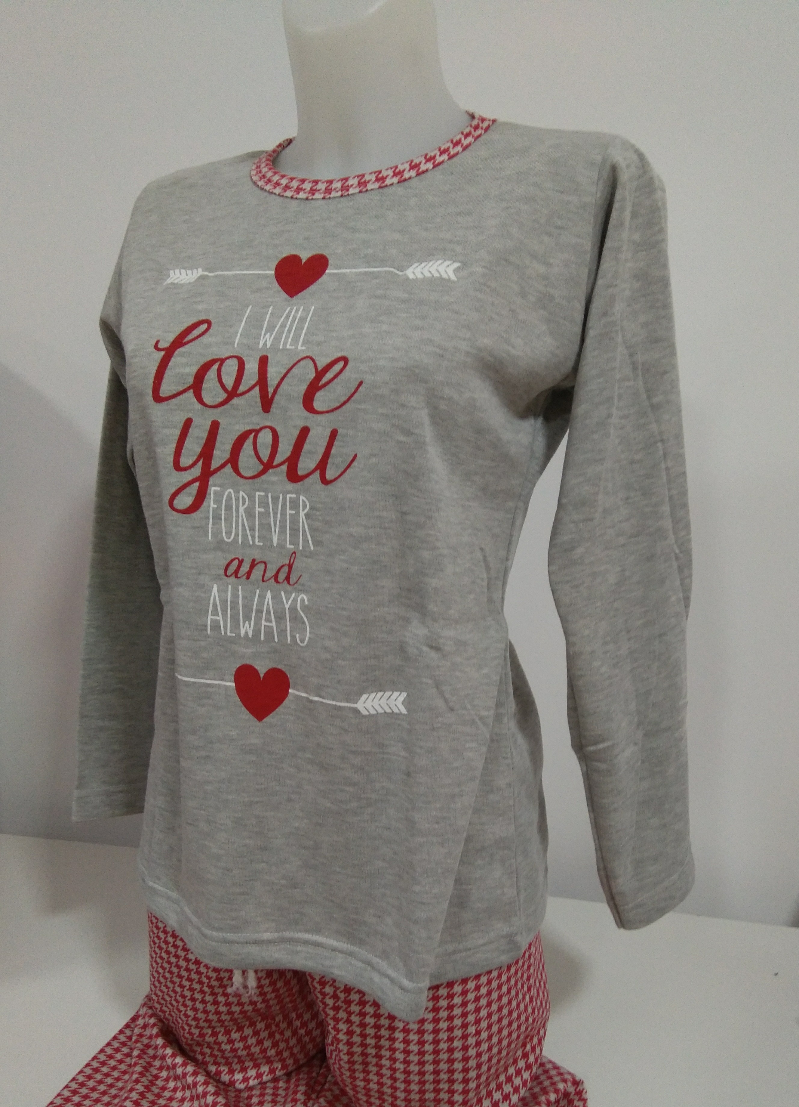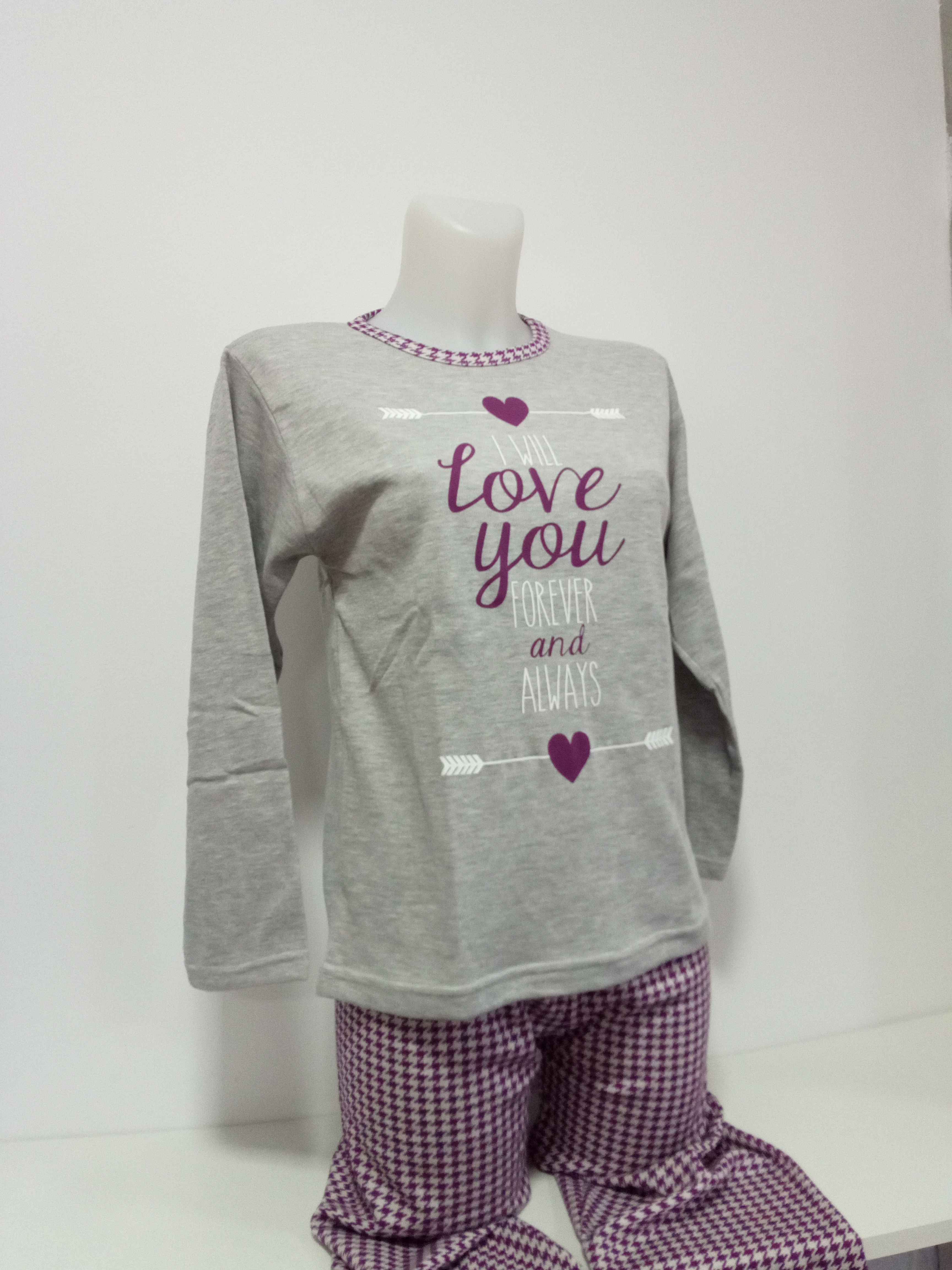 COMPOSIÇÃO E CARACTERÍSTICAS Ref.: pi10love16 Pijama de criança cardado camisola de gola redonda calça com punho 50% Algodão 50% poliéster Fabricado em Portugal